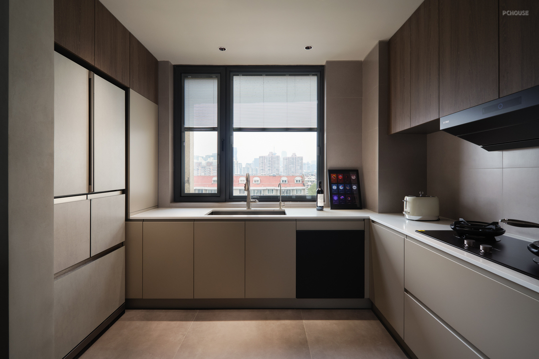 4、厨房L型+1型扩大厨房的操作空间,与餐厅形成开放式的整体空间;