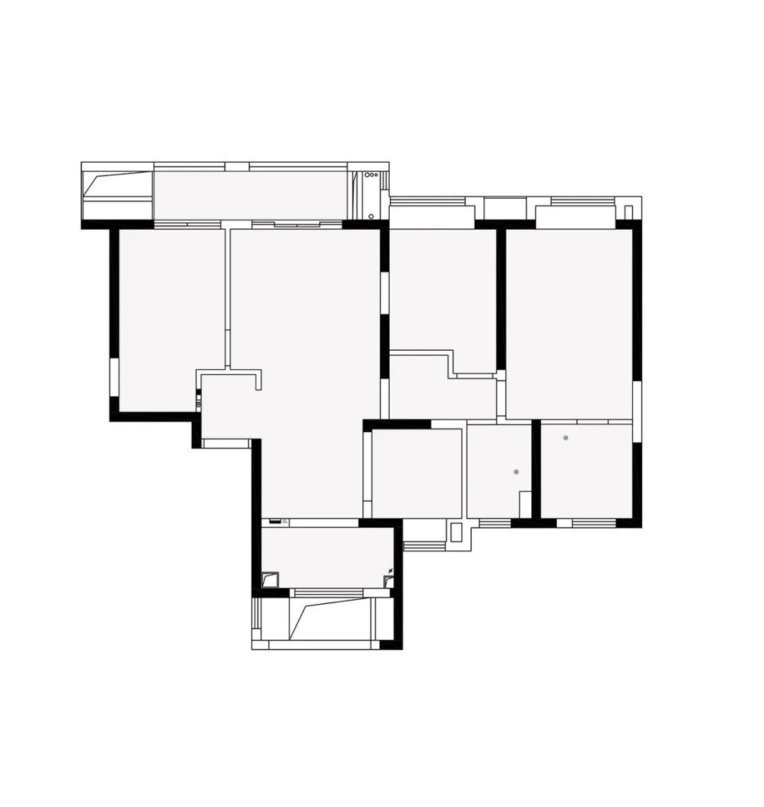 原始四房一厨两卫,空间相对比较独立紧凑;厨房餐厅比较小;南阳台利用率不高。 业主需求 1、两人居住,需要保留两个房间,别的空间可以重新规划利用;2、需要社交开放式空间,餐厨开放式;3、需要独立办公空间;4、需要电竞游戏房;5、衣物比较多需要衣帽间;6、保留两个卫生间。
