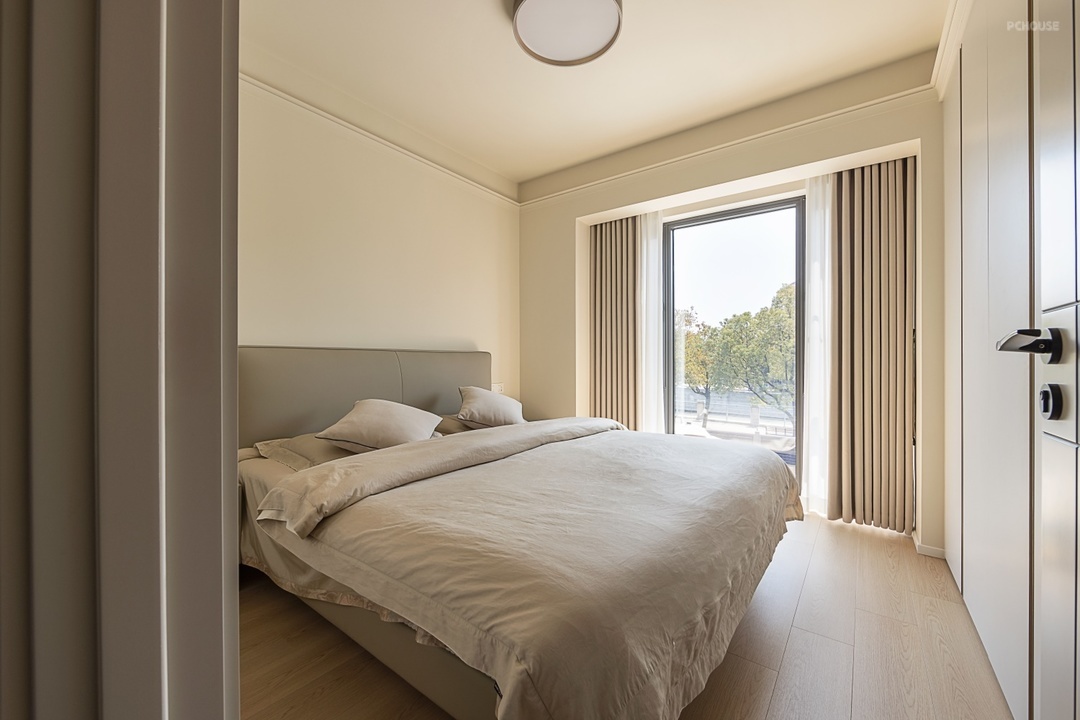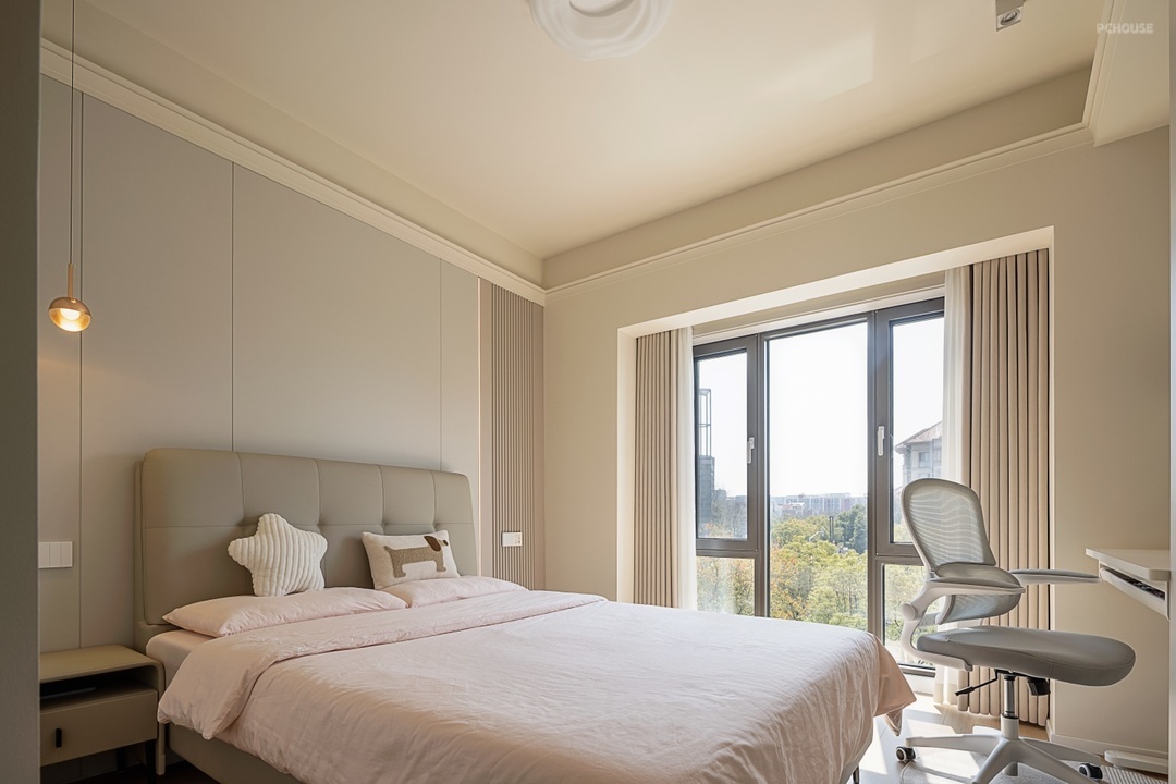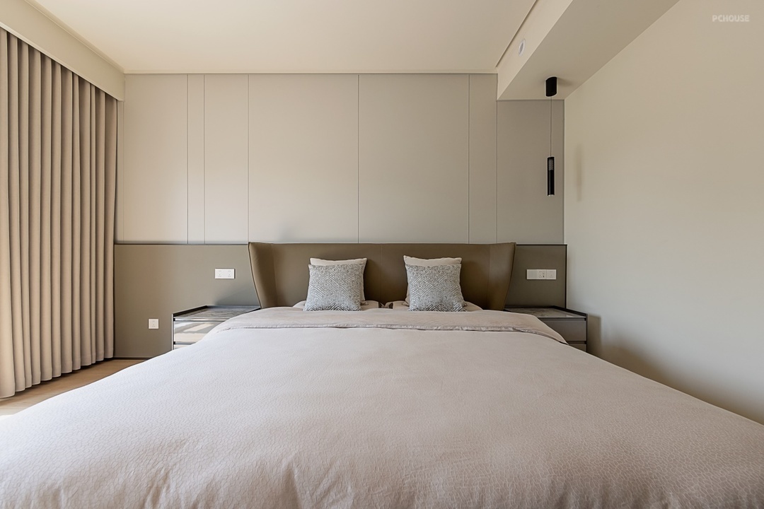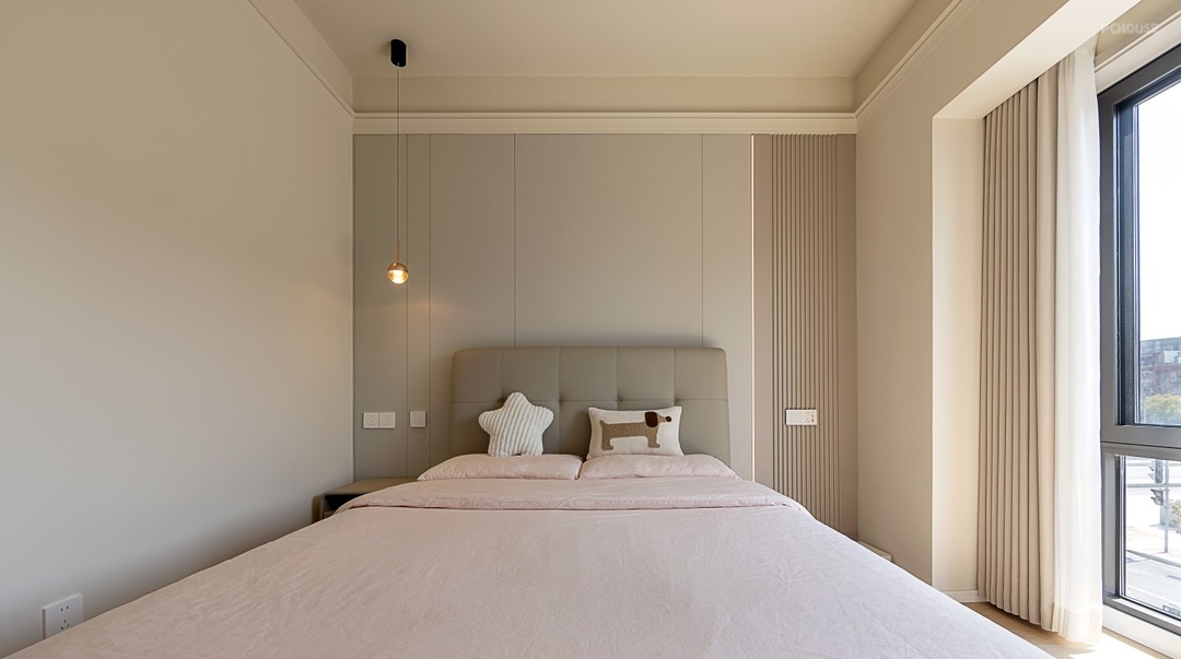在床头一侧吊灯设计增添空间温馨感,提升精致感。