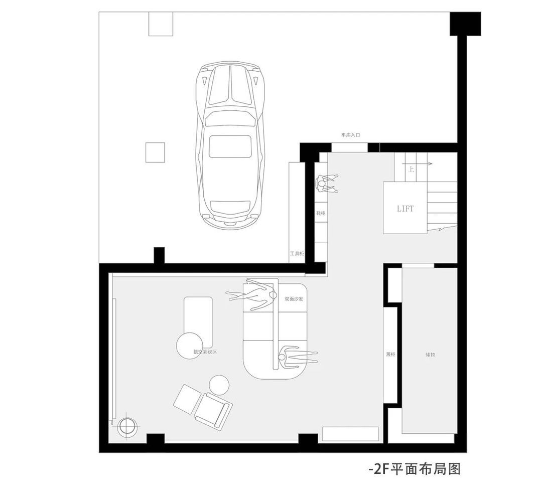 地下空间—— 双层拓展的多元社交场原始地下一层经搭建改造为两层,保留部分挑空设计,打造集休闲、会客于一体的复合空间:影视厅、健身区、茶室等功能区相互独立又彼此呼应,满足家庭娱乐与社交需求。此外,新增的 5 层液压电梯贯穿全楼,大幅提升垂直动线的便利性。