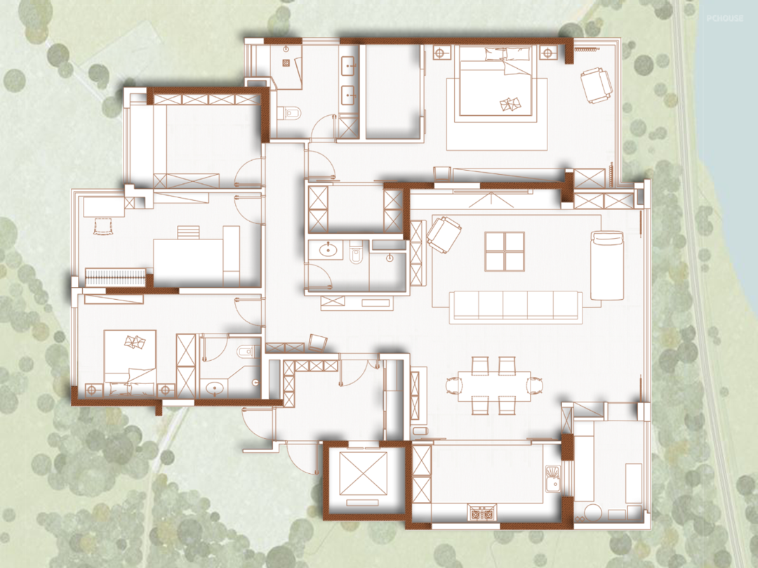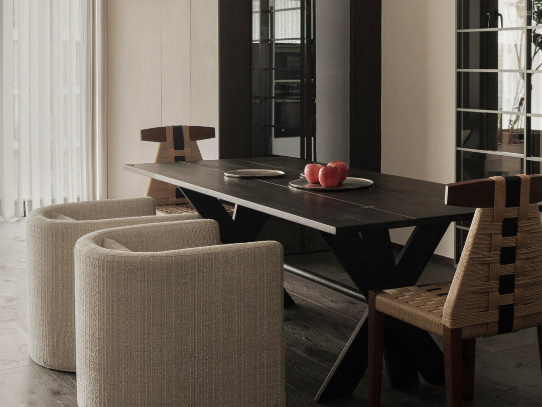 女业主很喜欢深色的木质元素,但是又担心搭配不好会导致新家显得沉闷老旧,同时她还希望空间时尚优雅和有一些中古元素。男业主则对于金属材质的柜门很感兴趣,至于空间的格调,他表示能否在满足妻子需求之上,保持空间的简洁舒适。最后他还希望书房有空间展示其收藏的乐高模型。