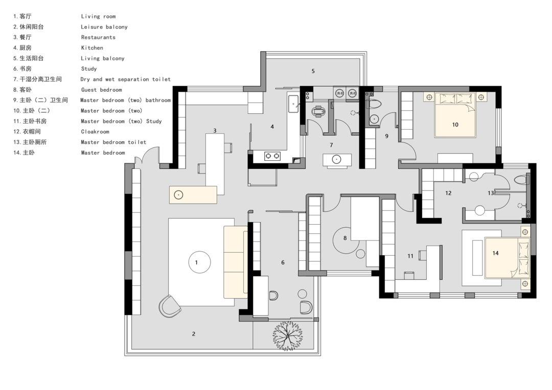 1.空间布局比较灵活,很多区域是大空间且墙体隔断较少,较为自由的划分功能区域;