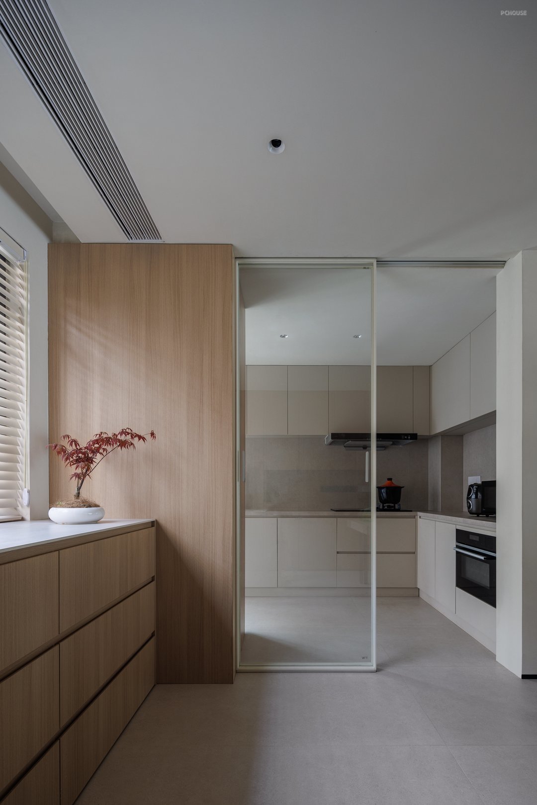 2.功能迭代:针对户主的居家办公需求,在主卧设置可开闭的屏风式书房;儿童房采用模块化家具预留成长空间,全屋定制收纳系统实现隐形存储;