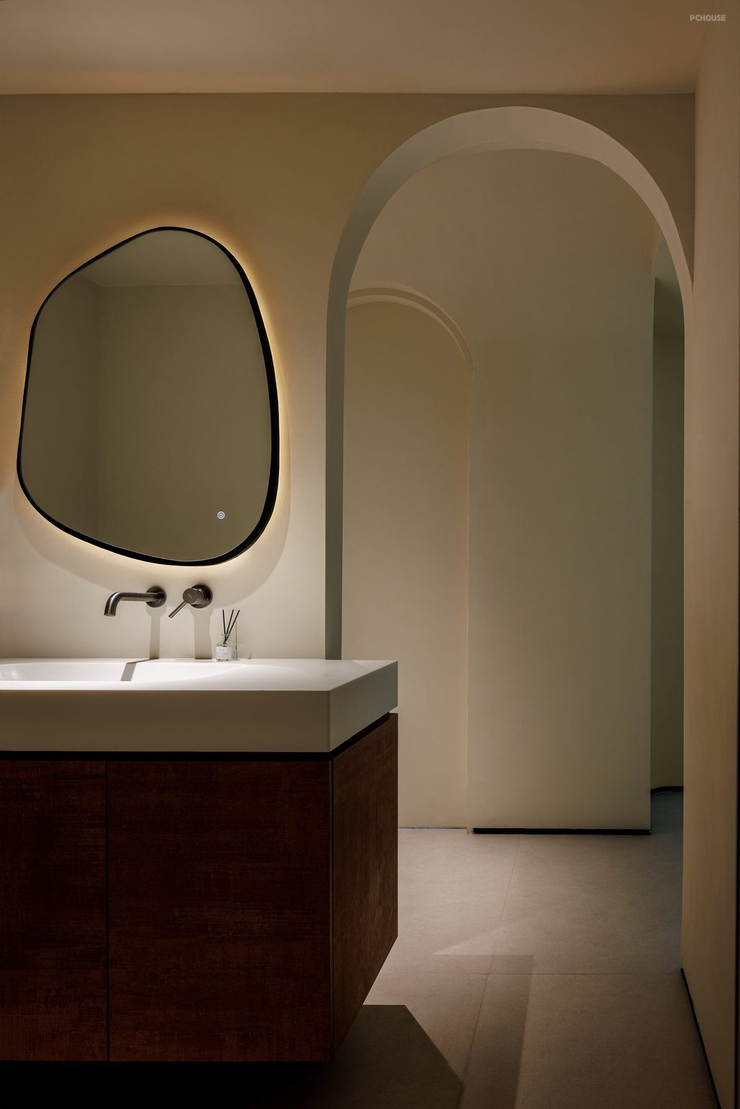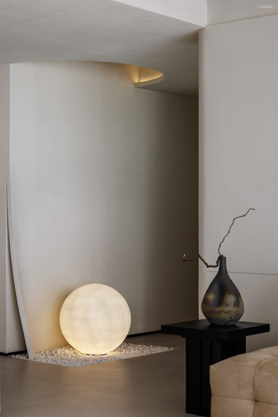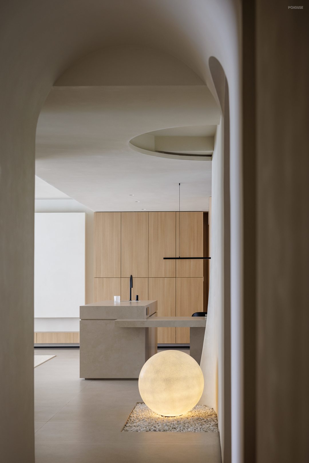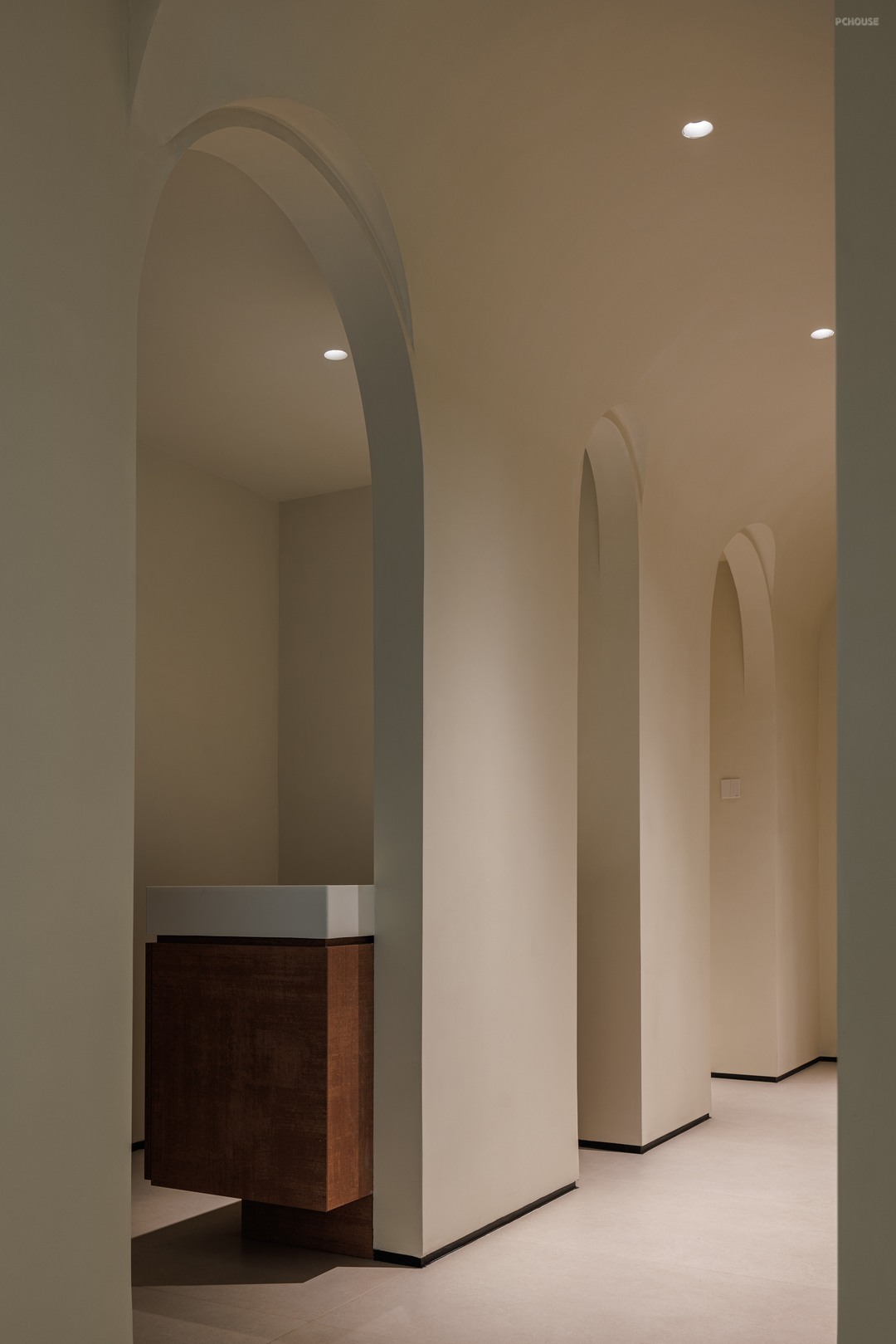 3.美学平衡:在户主偏好的极简基础中注入艺术元素,如书页造型的装饰墙、拱形走廊设计既保持空间整体性又避免单调。