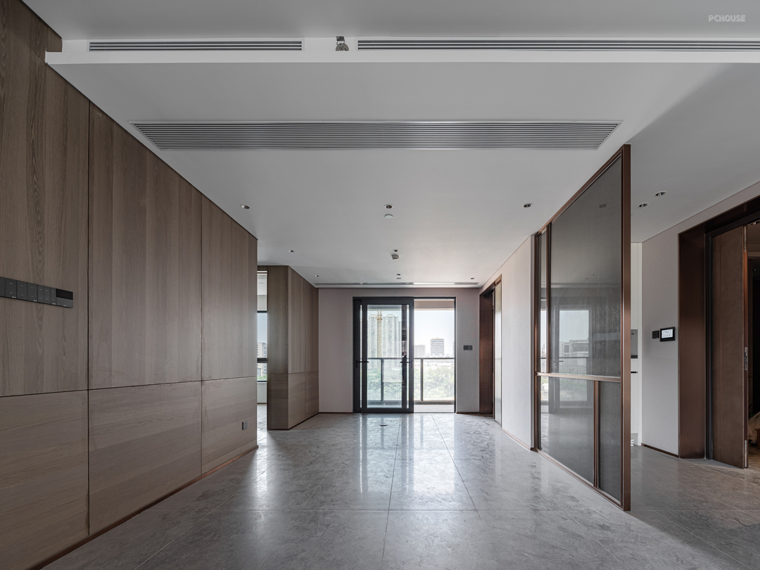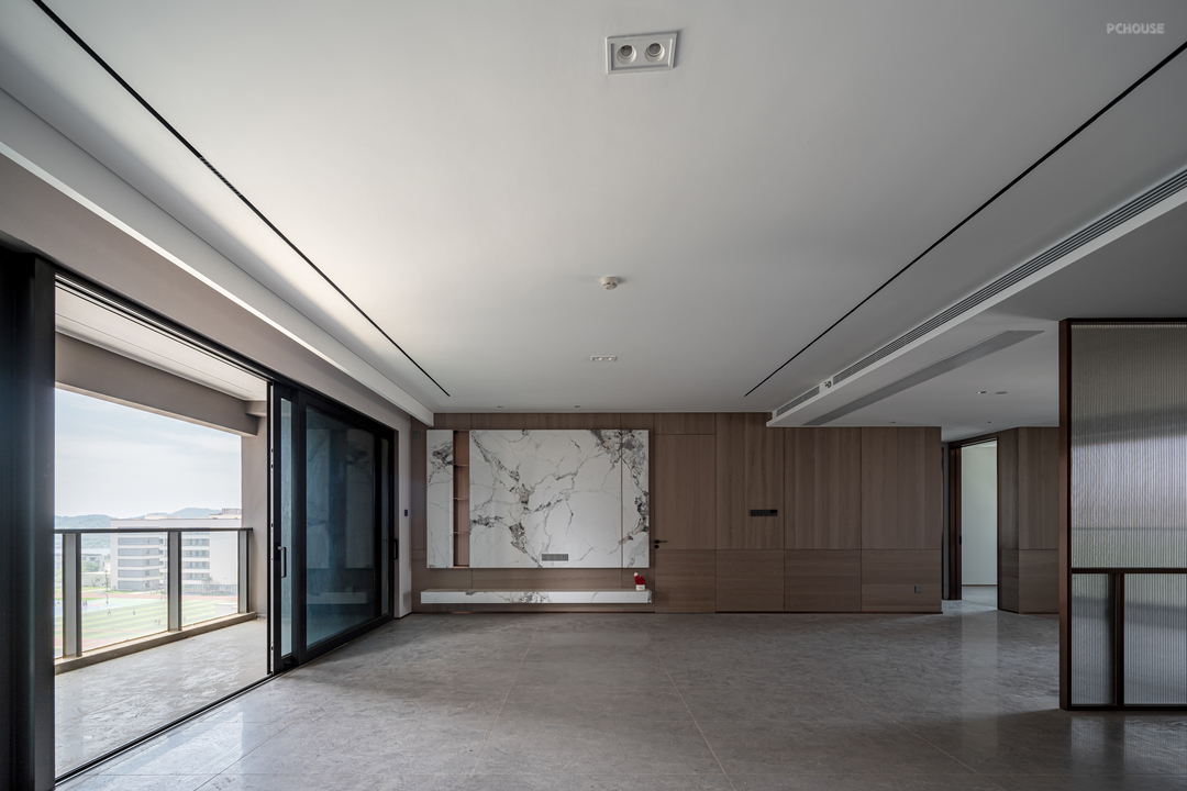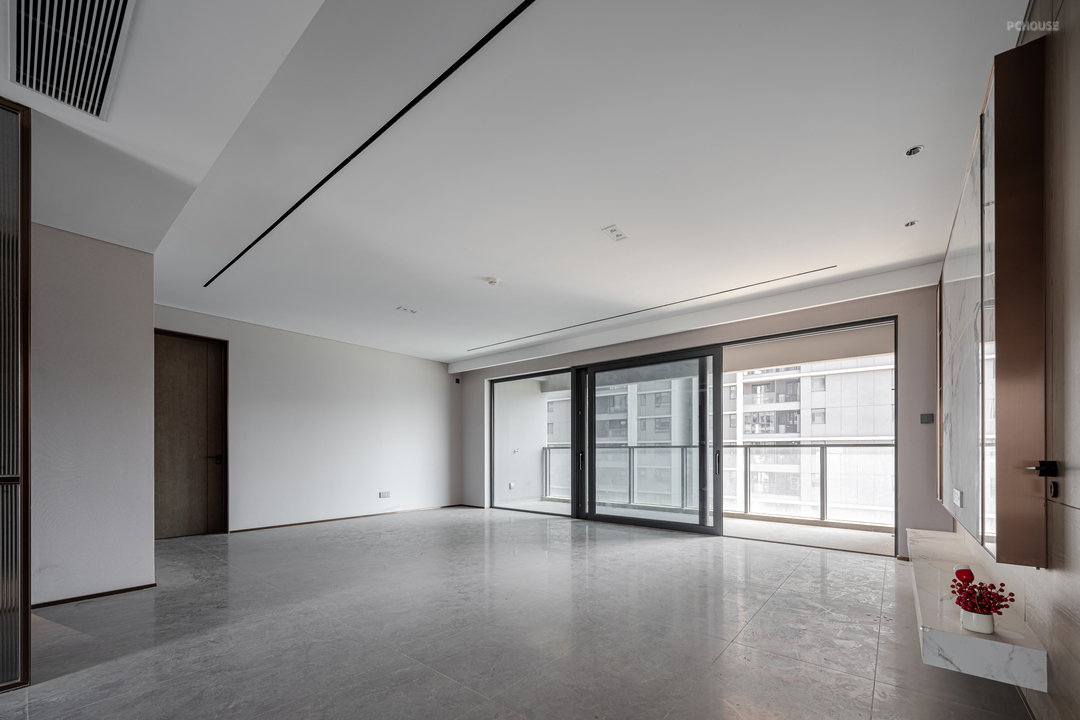 拆除原有精装房的阳台,客厅地板向外延伸整个客厅空间视觉变得更开阔。