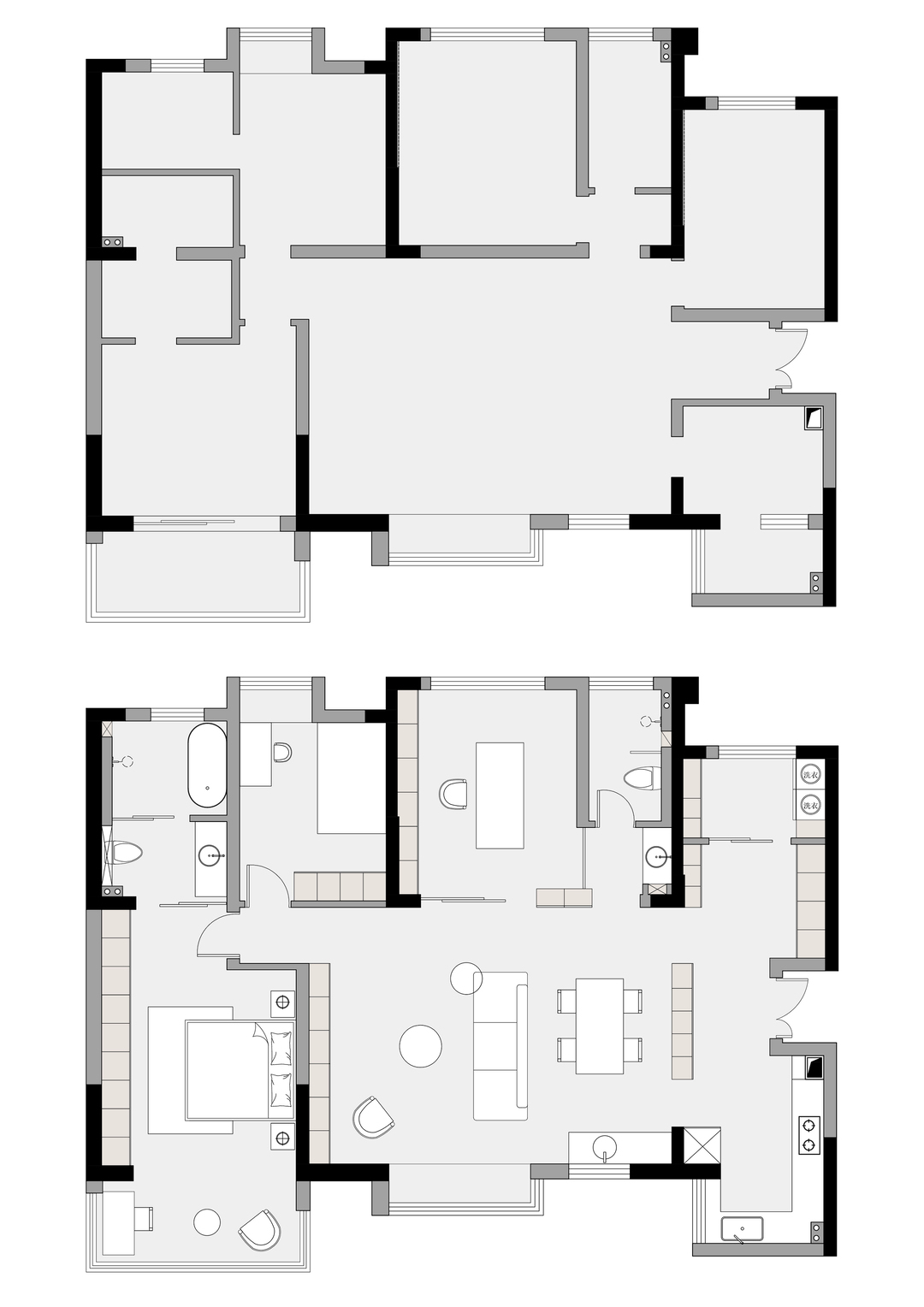 2.功能优化与重组:户型结构调整,套四改套三,释放卧室空间用于公共空间,整合家政、收纳功能,让空间高效服务生活。