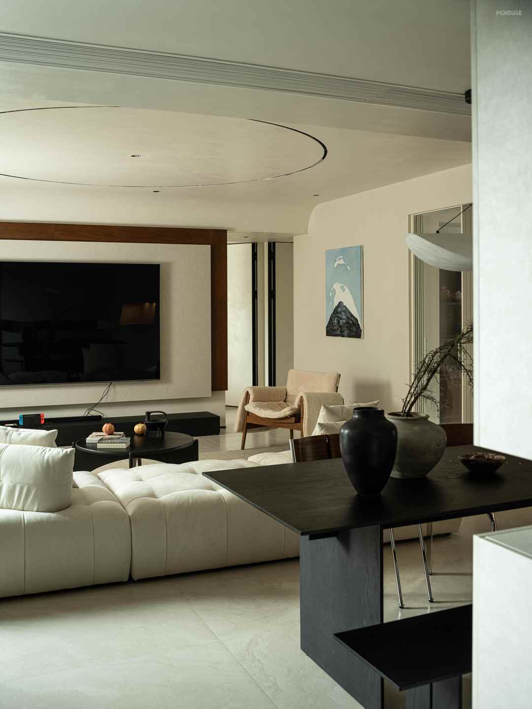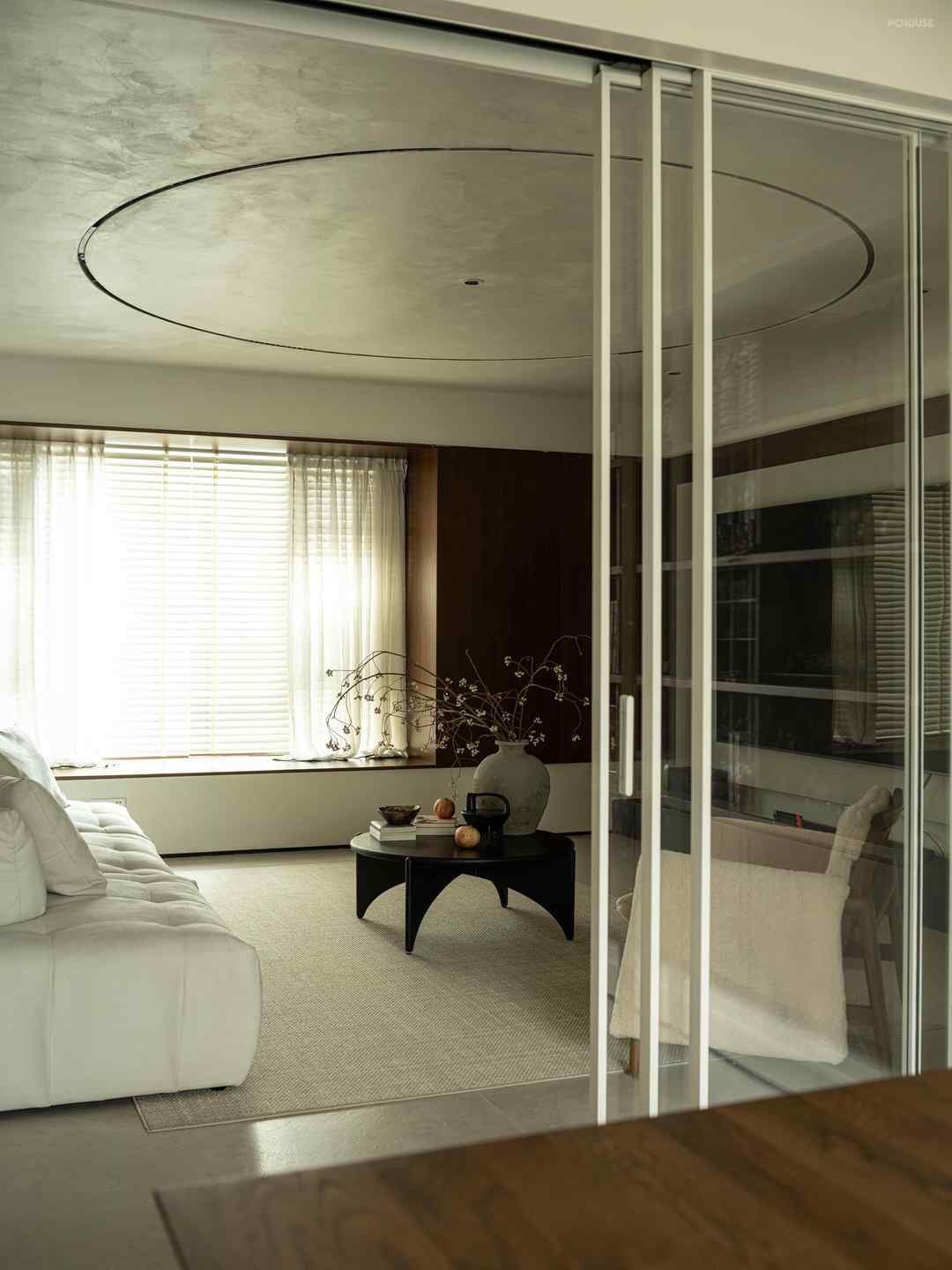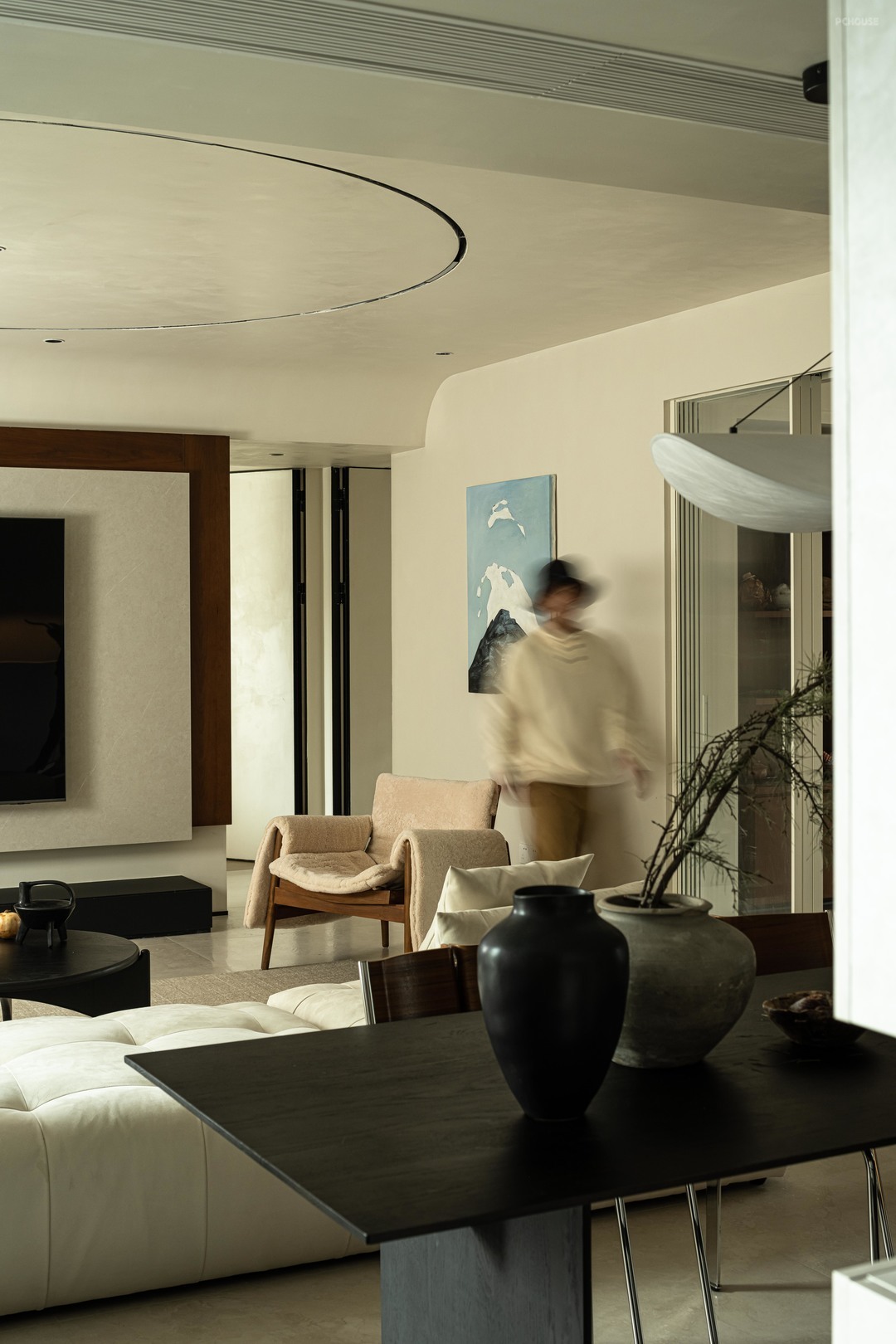 前言: 本案将套四户型改为套三格局,设计师通过“去卧室化”的大胆尝试,将更多空间留给家人相处的温情时刻,用克制而富有诗意的设计语言,诠释了“少即是多”的居住哲学。