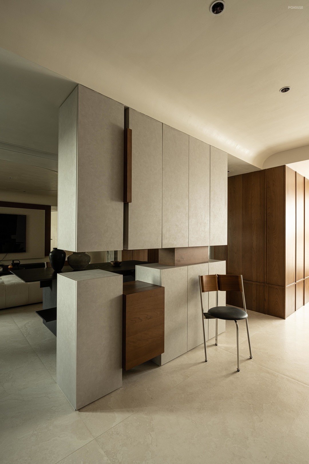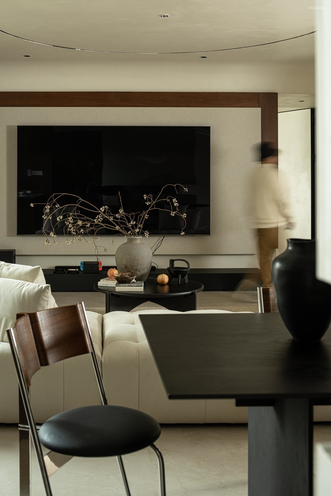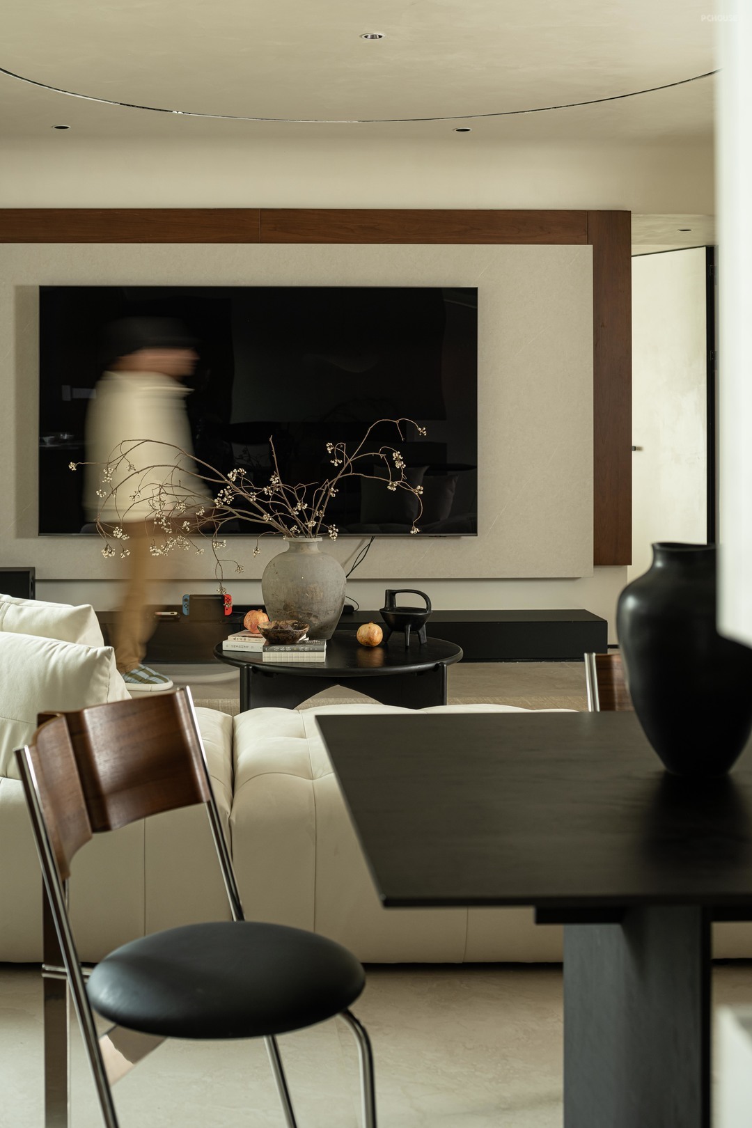 前言: 本案将套四户型改为套三格局,设计师通过“去卧室化”的大胆尝试,将更多空间留给家人相处的温情时刻,用克制而富有诗意的设计语言,诠释了“少即是多”的居住哲学。