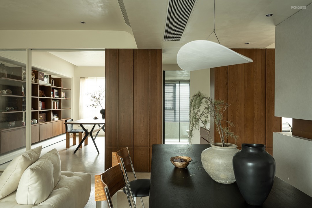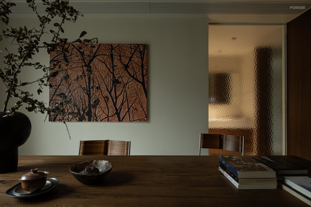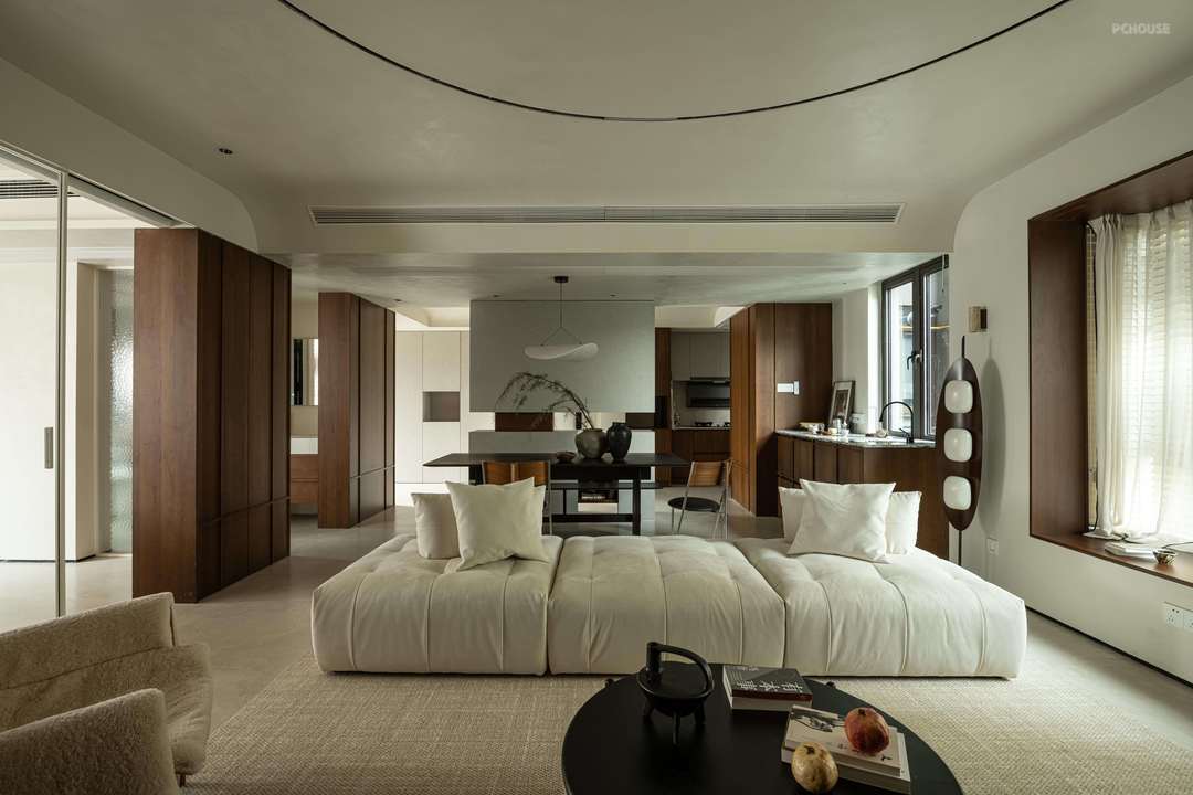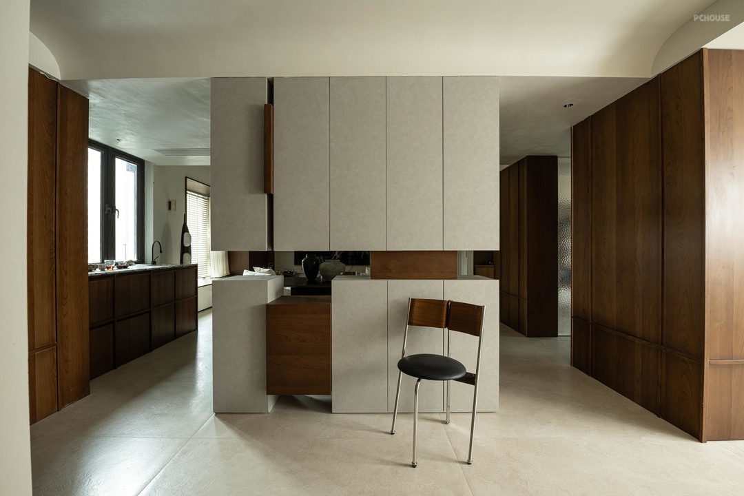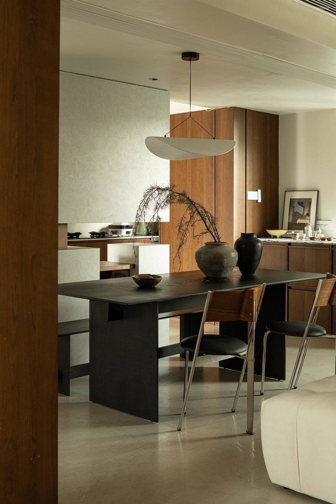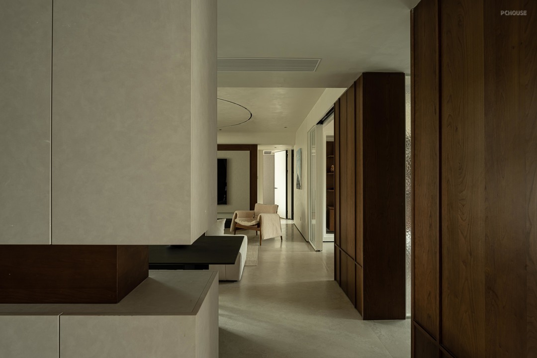 3.美学与空间设计:整体上材质与色调统一,构建温暖沉稳基调;局部区域打破空间封闭性,在开放联动中保持空间层次,最终实现美学生活化的居住体验。