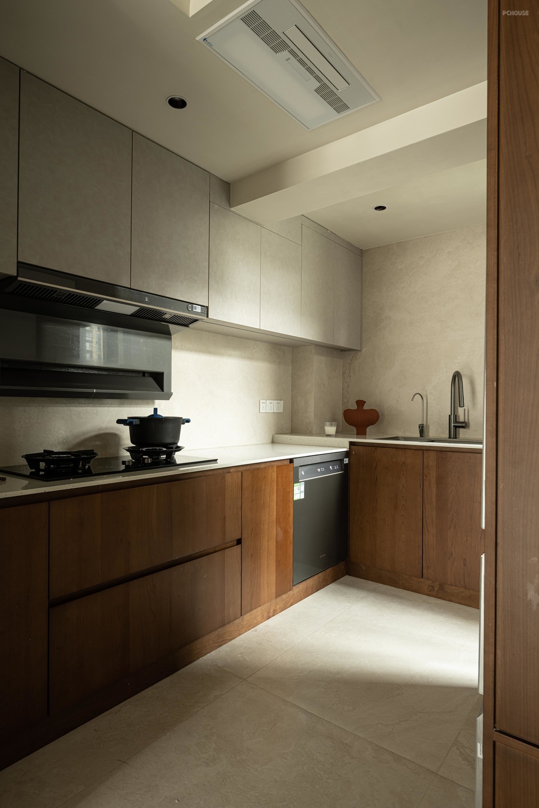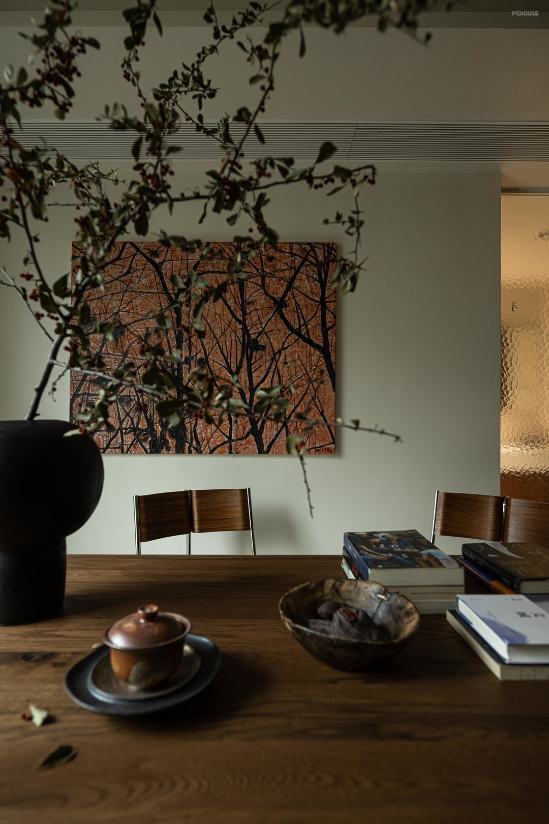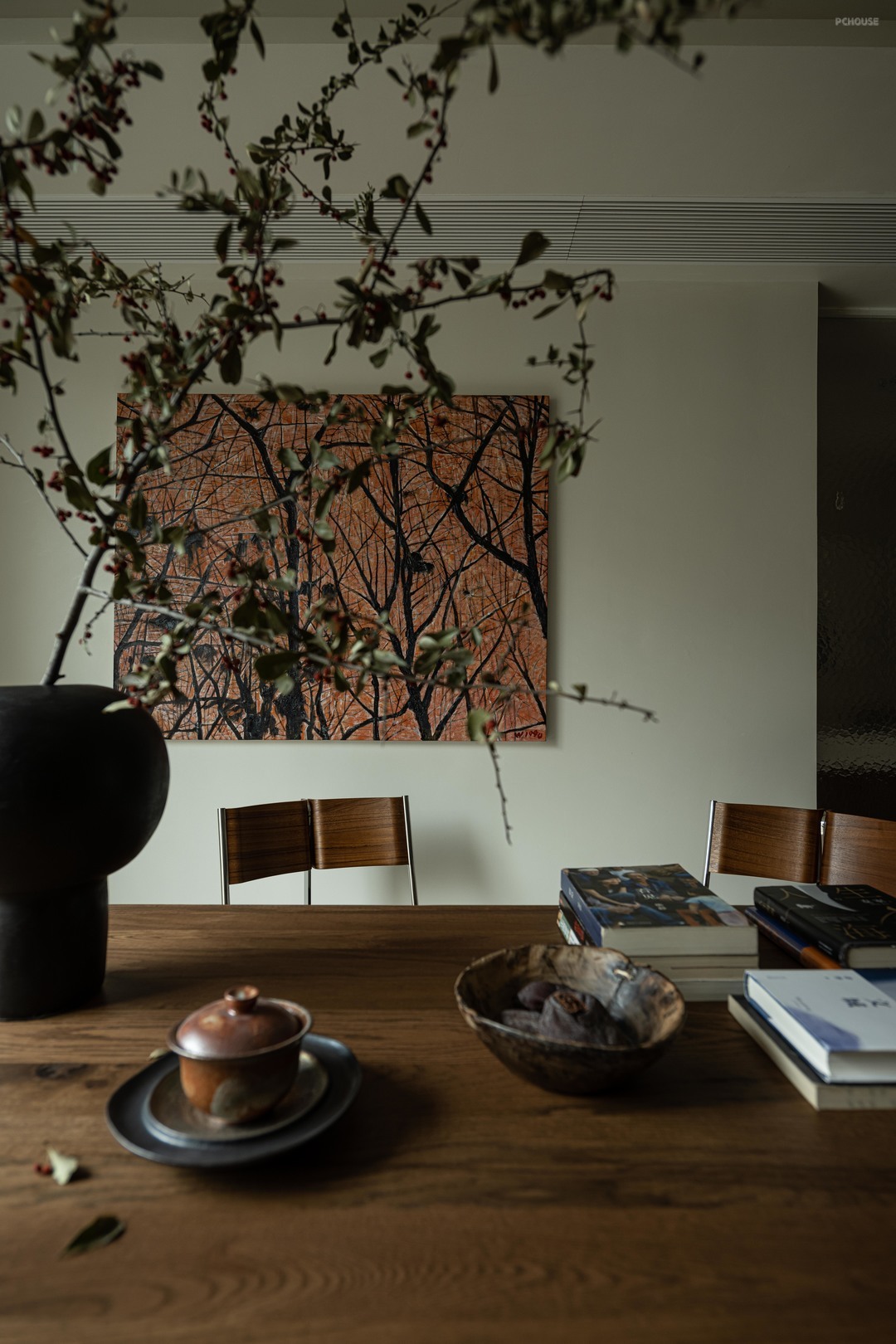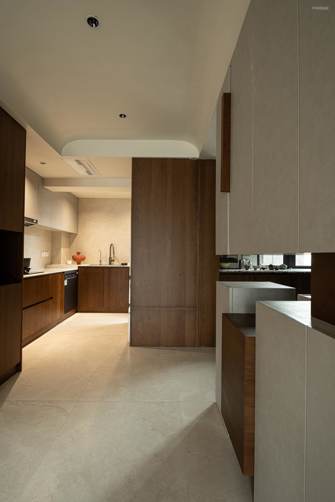 3.美学与空间设计:整体上材质与色调统一,构建温暖沉稳基调;局部区域打破空间封闭性,在开放联动中保持空间层次,最终实现美学生活化的居住体验。