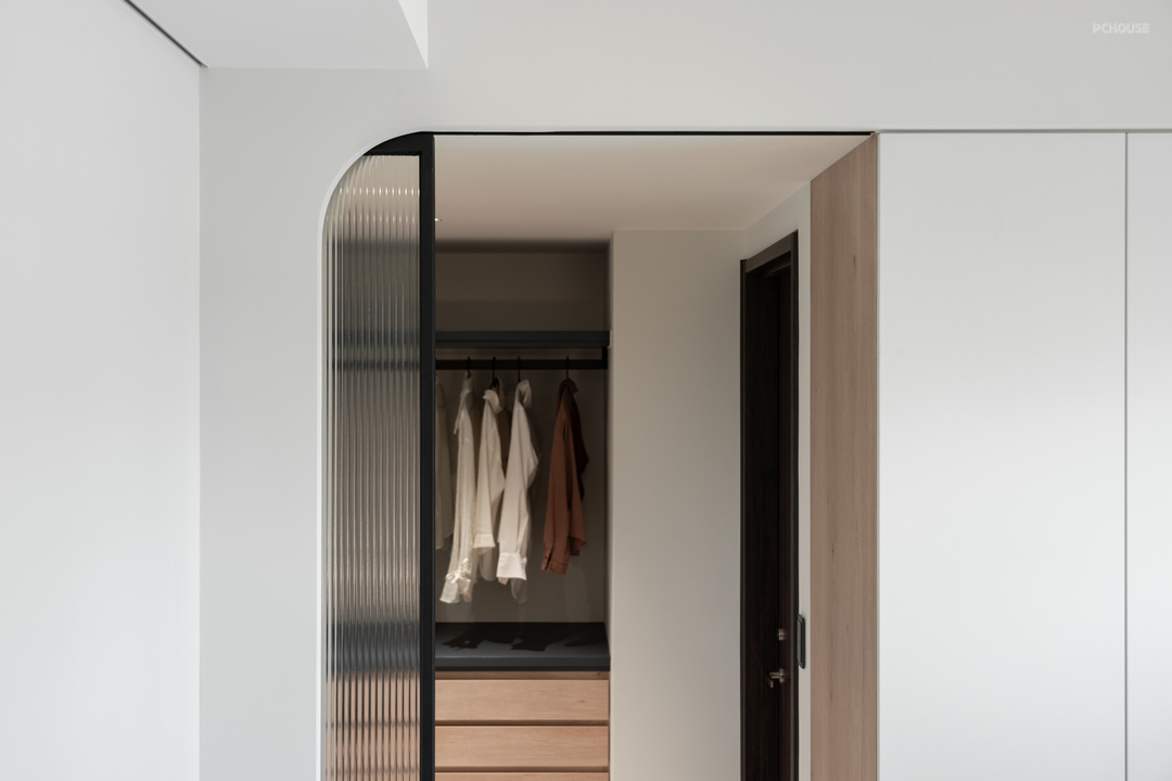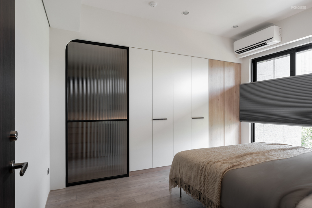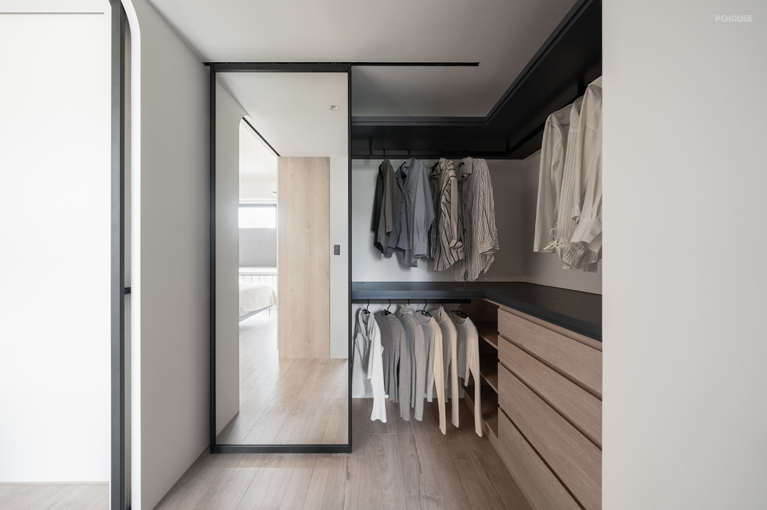 床尾衣柜串接横拉门,通往内侧的更衣室,维持整体的收纳尺度与动线流畅。