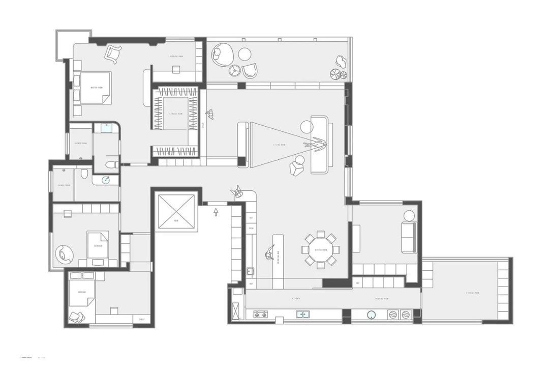 本案位于闵行区浦江华侨城的大平层,房屋原始格局为四房三卫一厨房。居住人员包括一对父母、一个小孩,后续可能会聘请保姆。业主希望保留三个房间,主卧、儿童房,另设一个保姆间。卫生间保留两个,同时需要打造一个衣帽间和一间书房。