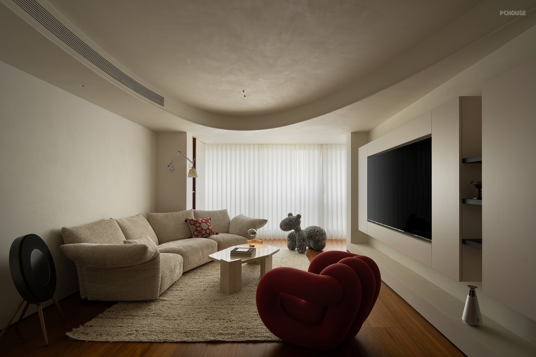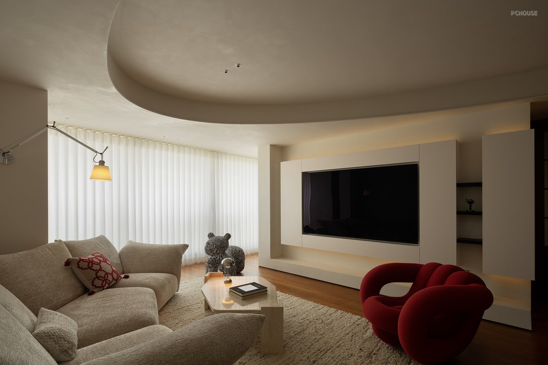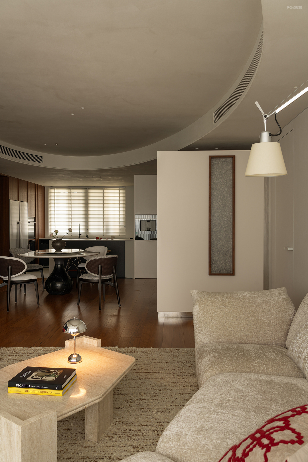 本案是年轻的三口之家,对于生活品质有一定的追求,入户玄关满墙镜子的设计,拓宽视觉边界,让入户瞬间有了通透感。客厅入眼的椭圆形吊顶,是整个空间的点睛之笔。每一处细节都在回应 “家是生活载体” 这个本质,让风格不再是浮于表面的装饰,而是融入日常的生活底色。当混搭风格在空间里完成交织,我们看到的是复古风格与现代生活的共鸣,它不再是冰冷的设计案例,而是有温度、有故事的家。