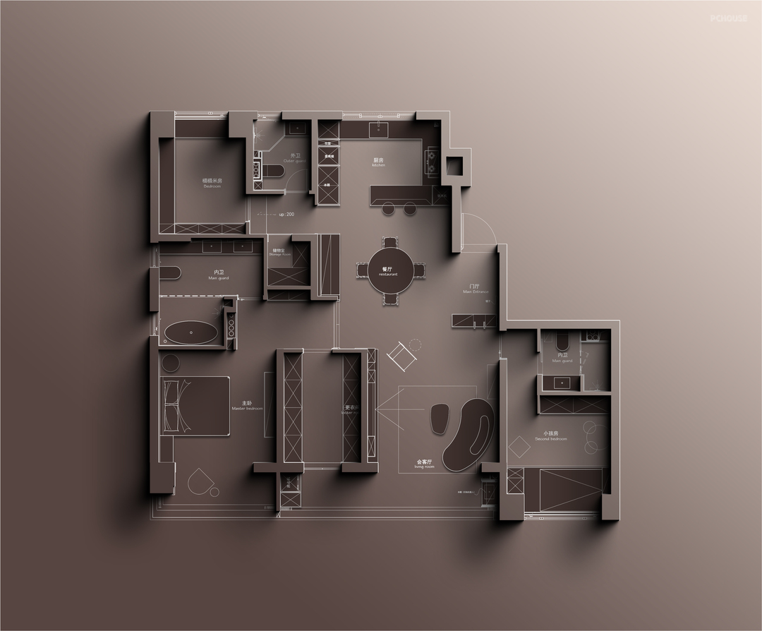 在都市住宅设计的版图里,每一个项目都是独特的生活切片。本案之中“融合” 便成为贯穿始终的关键词 —— 让法式风格的优雅浪漫,与中古风格的温润复古相遇,在同一空间里编织独特的生活叙事。