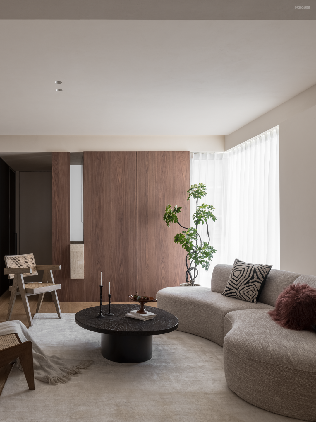 为了不挡背后窗户采光,沙发选择也是比较轻盈的款式,没那么占地方,靠背也比较窄,特意选了个弧形的,不会完全靠墙,这样能把窗户背后的空间留出来,放一放绿植花盆之类的