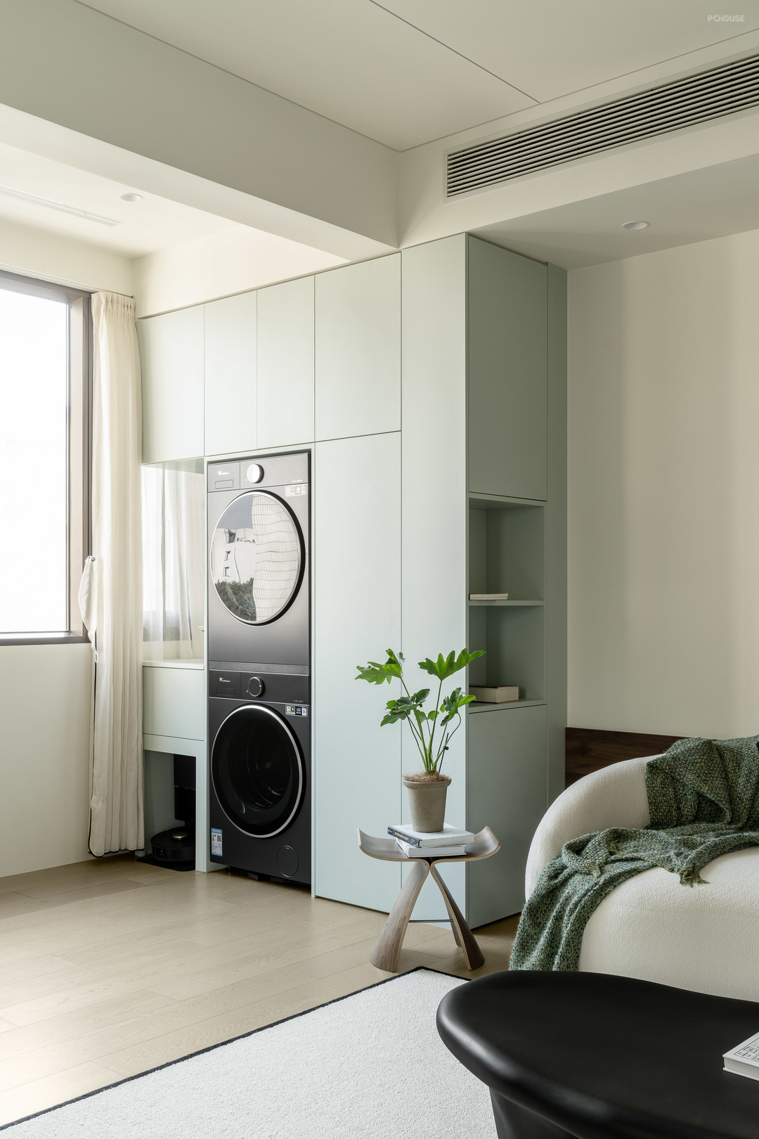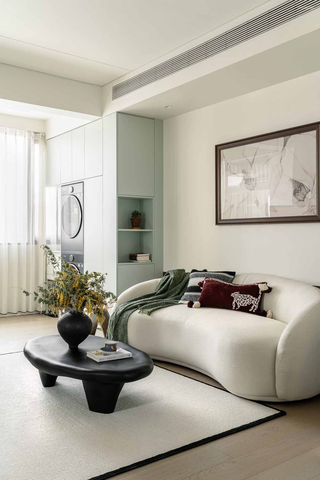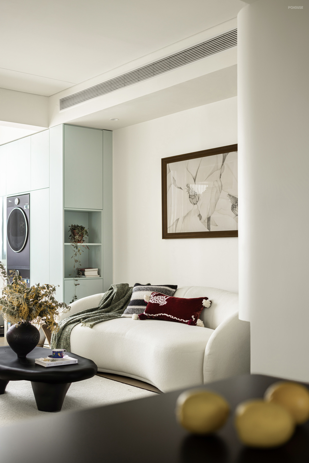 整体风格以浅色为主调,搭配少量深色木质元素添加温暖,没有很复杂的装饰,形式都在追随基础的功能。