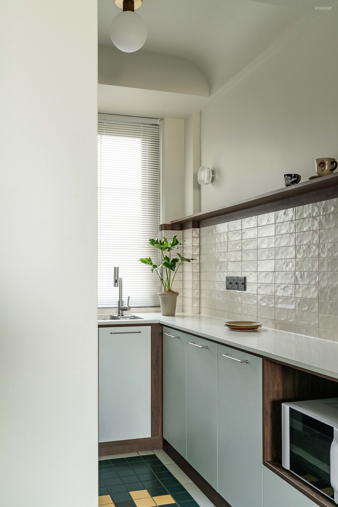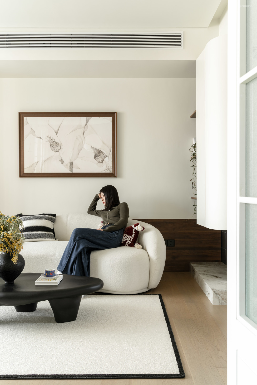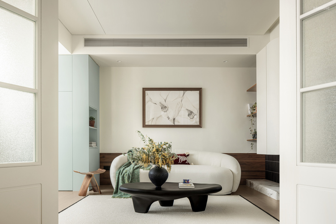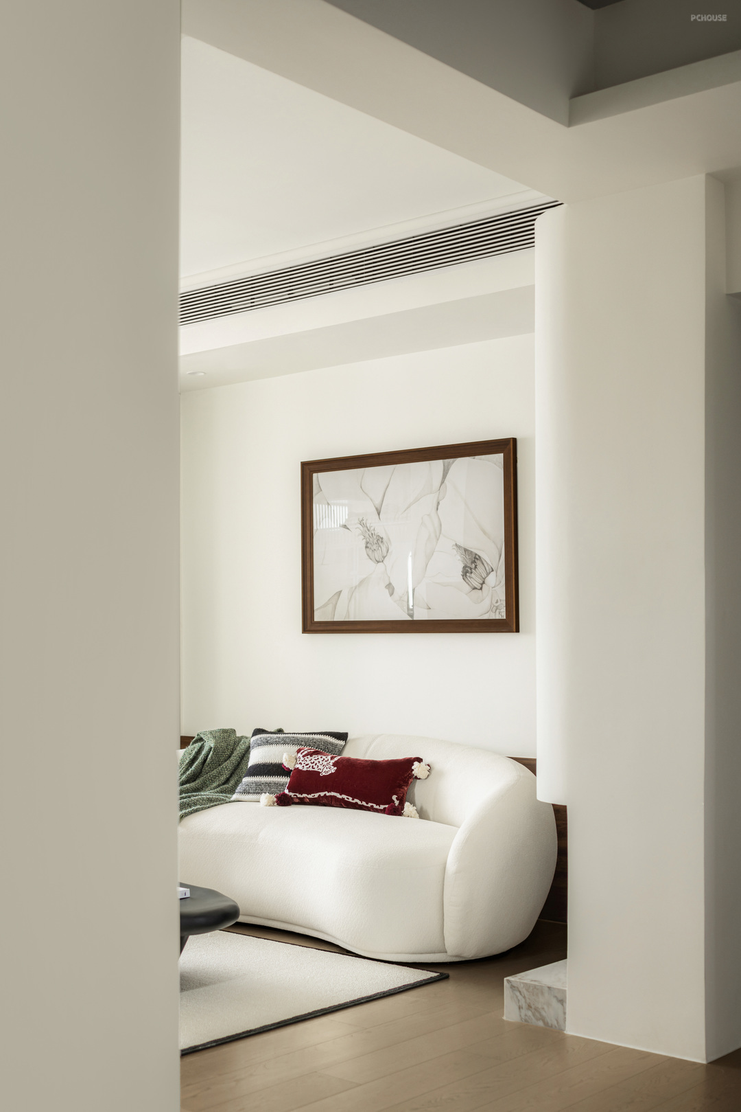 整体风格以浅色为主调,搭配少量深色木质元素添加温暖,没有很复杂的装饰,形式都在追随基础的功能。