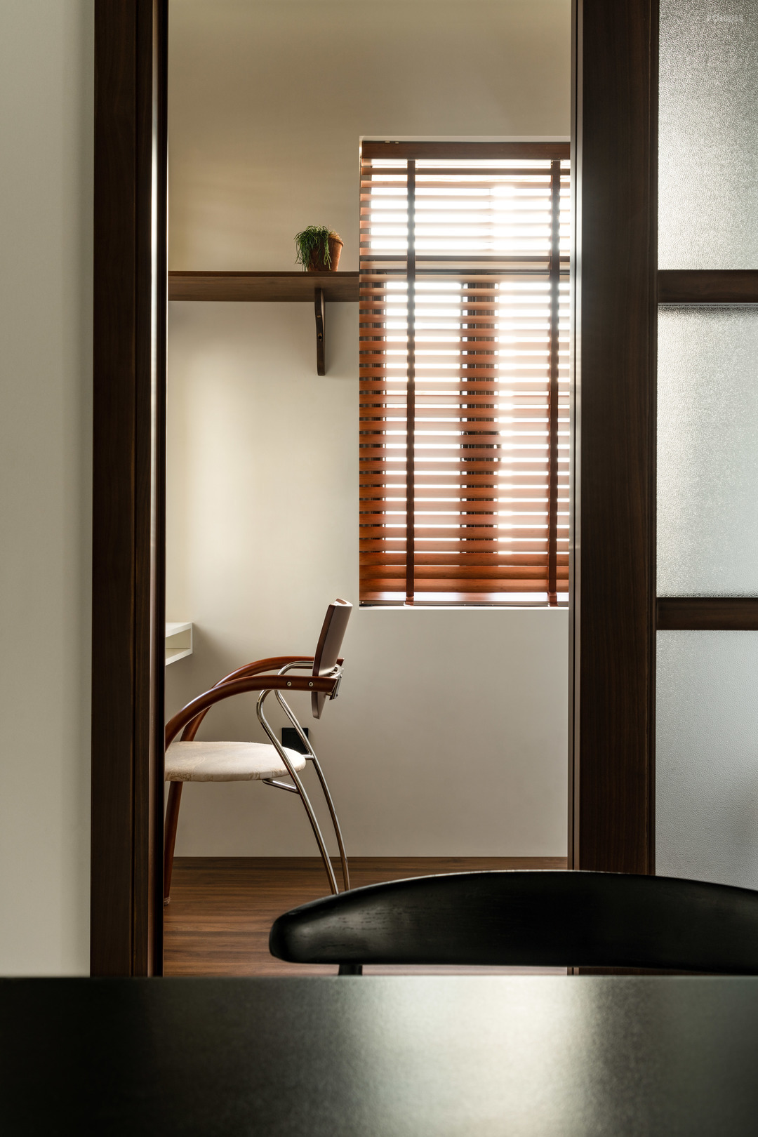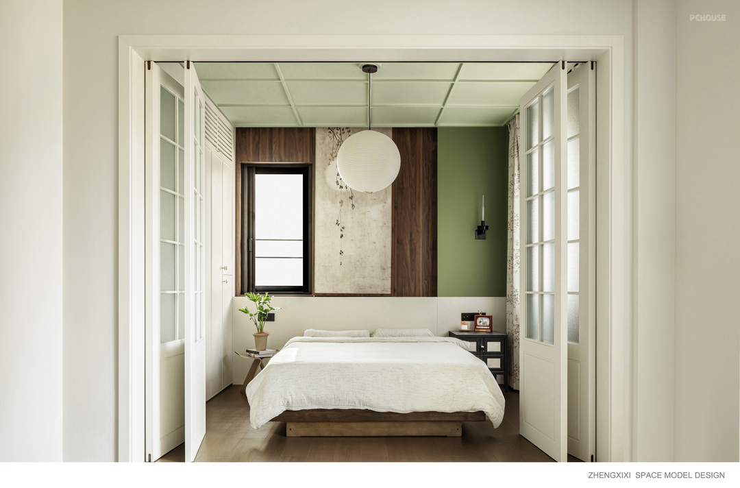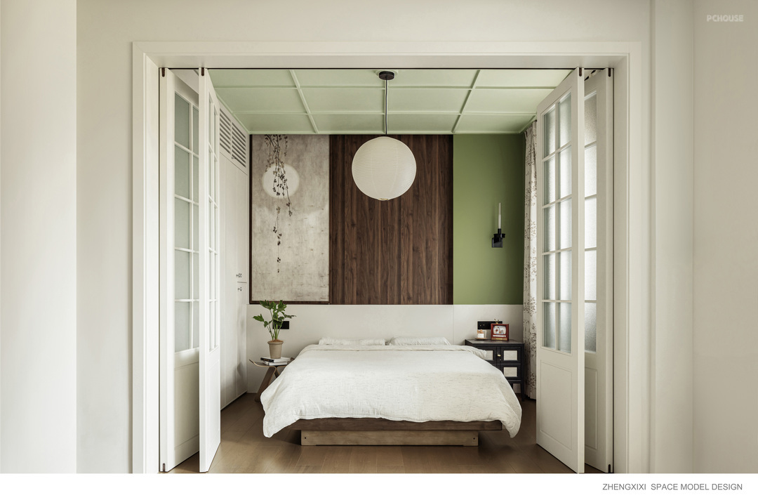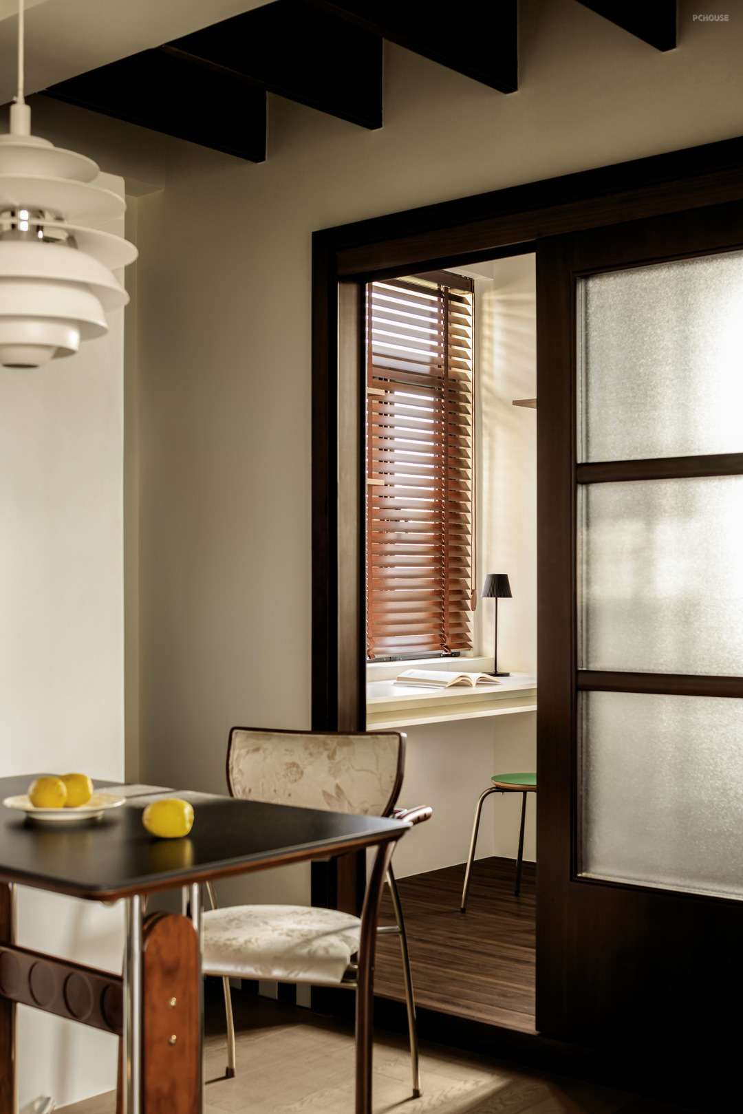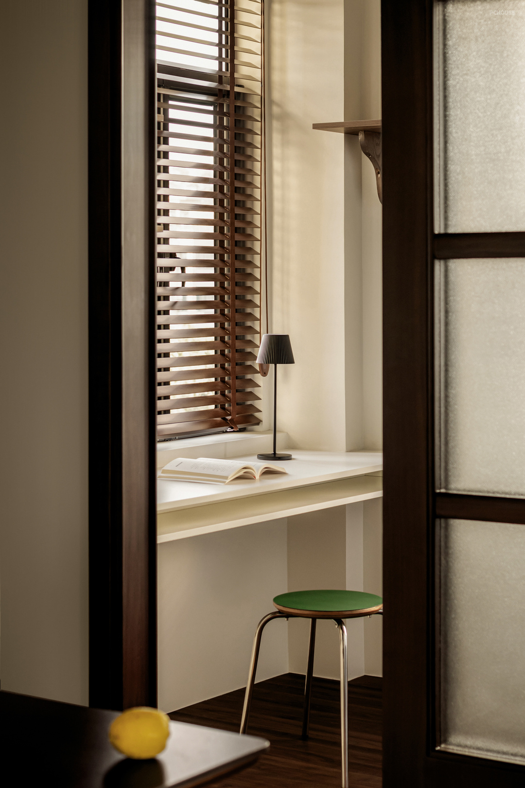 3、次卧整体抬高,日常作为书房使用,平开门设计推拉门,让空气和光线更加流通。