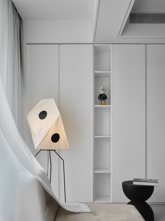 从这个空间也可以窥探到照明设计在这个家的运用,设计师说:“平常拍摄较少有灯光的加入,这个项目我更喜欢灯光的融入,它不只是提供功能性的照明,而是可以通过灯光让空间赋予色彩感立体感、空间感、层次感、氛围感。”