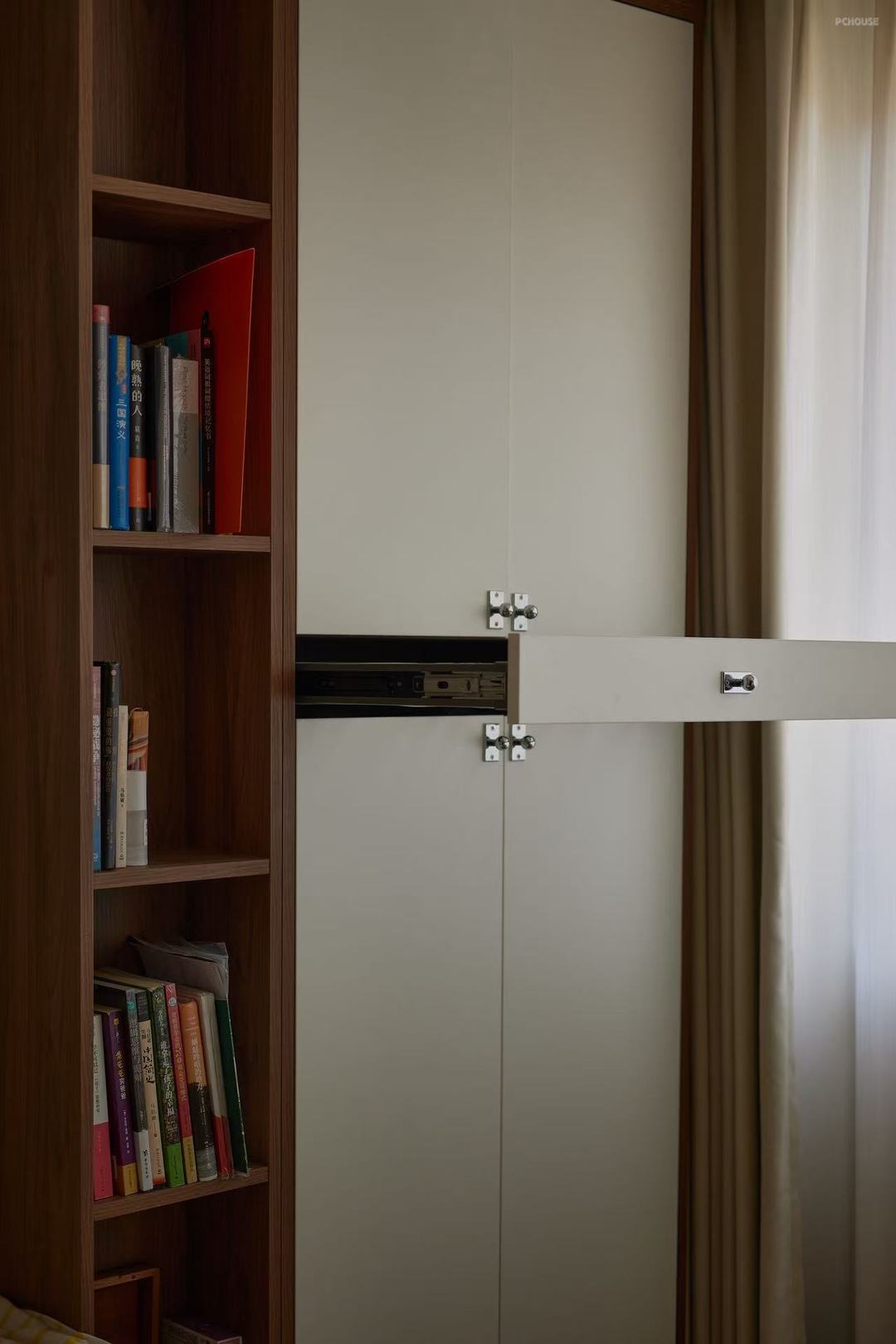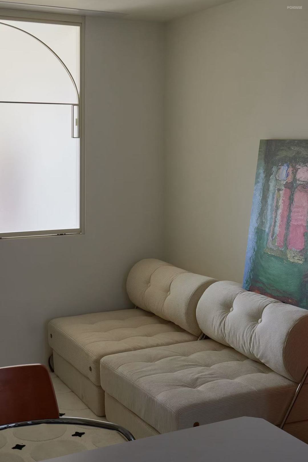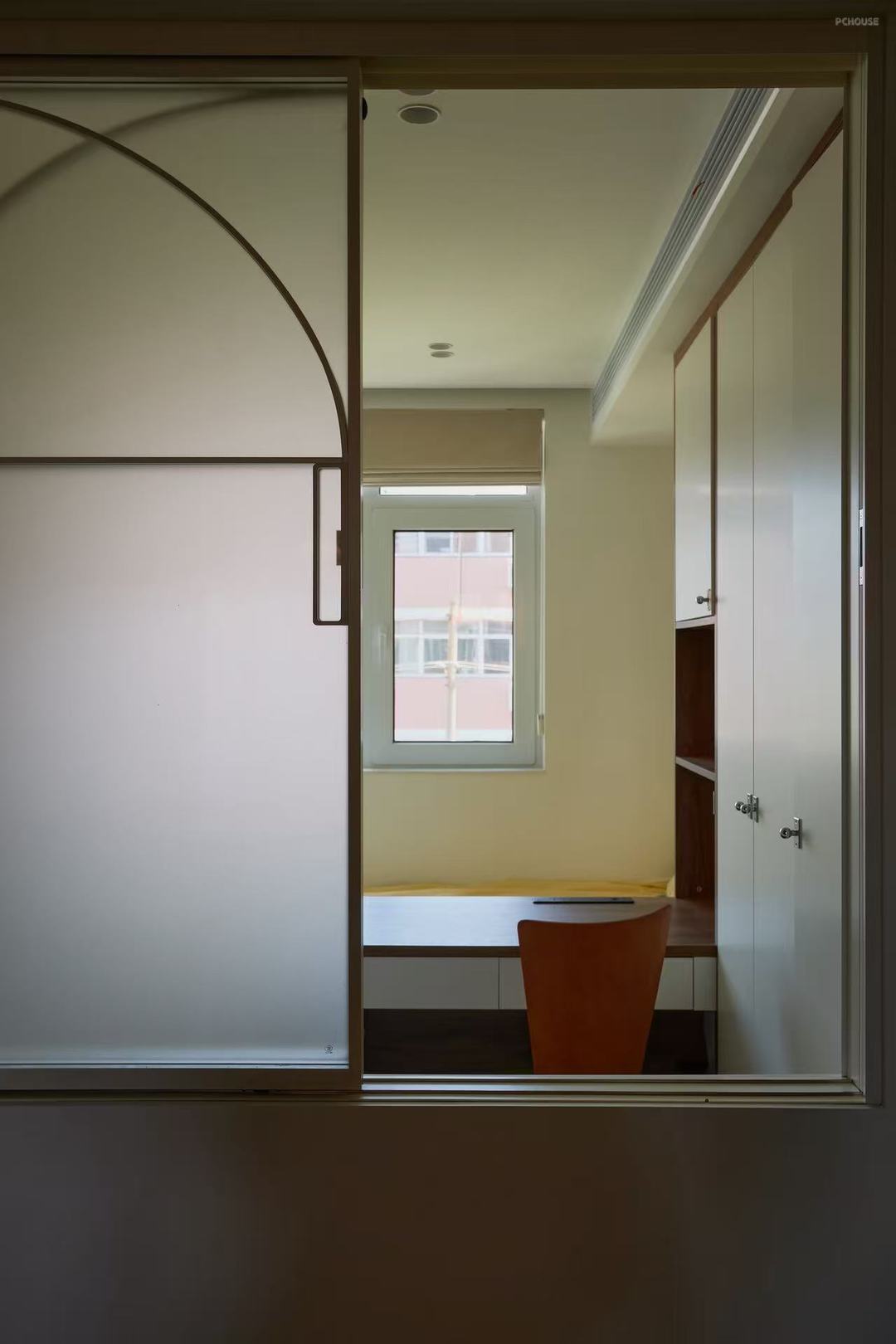 客厅与次卧在滑轨上自由呼吸——乳白色墙面透过玻璃晕染出朦胧光晕,让母亲在沙发备课抬眼间,便能捕捉儿童房内兄妹拼积木的剪影。