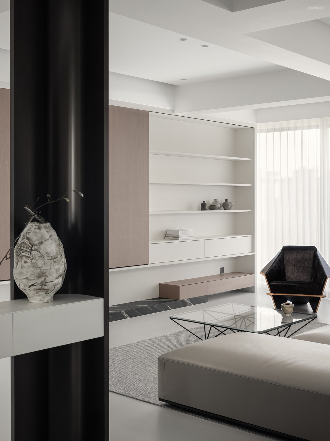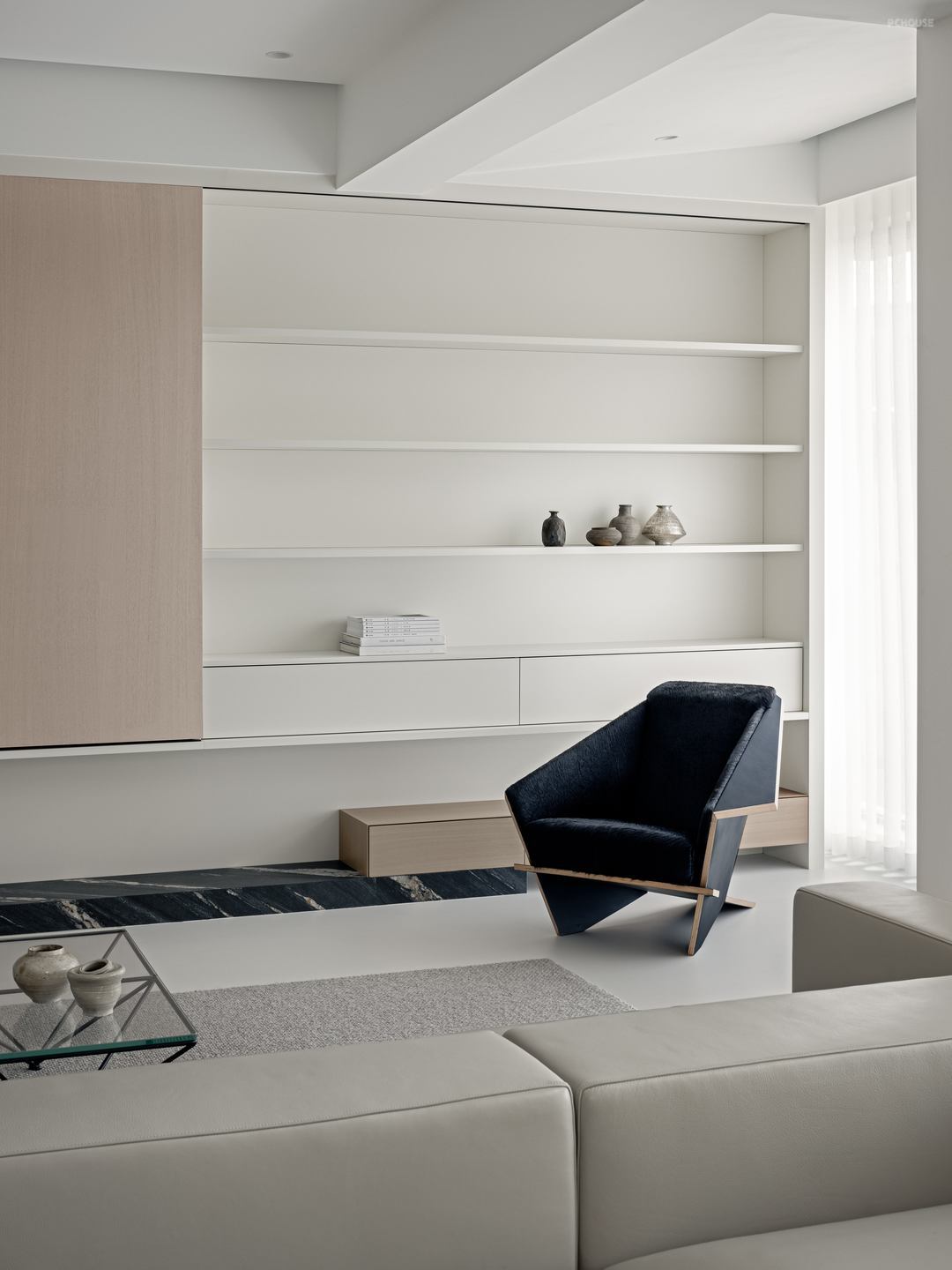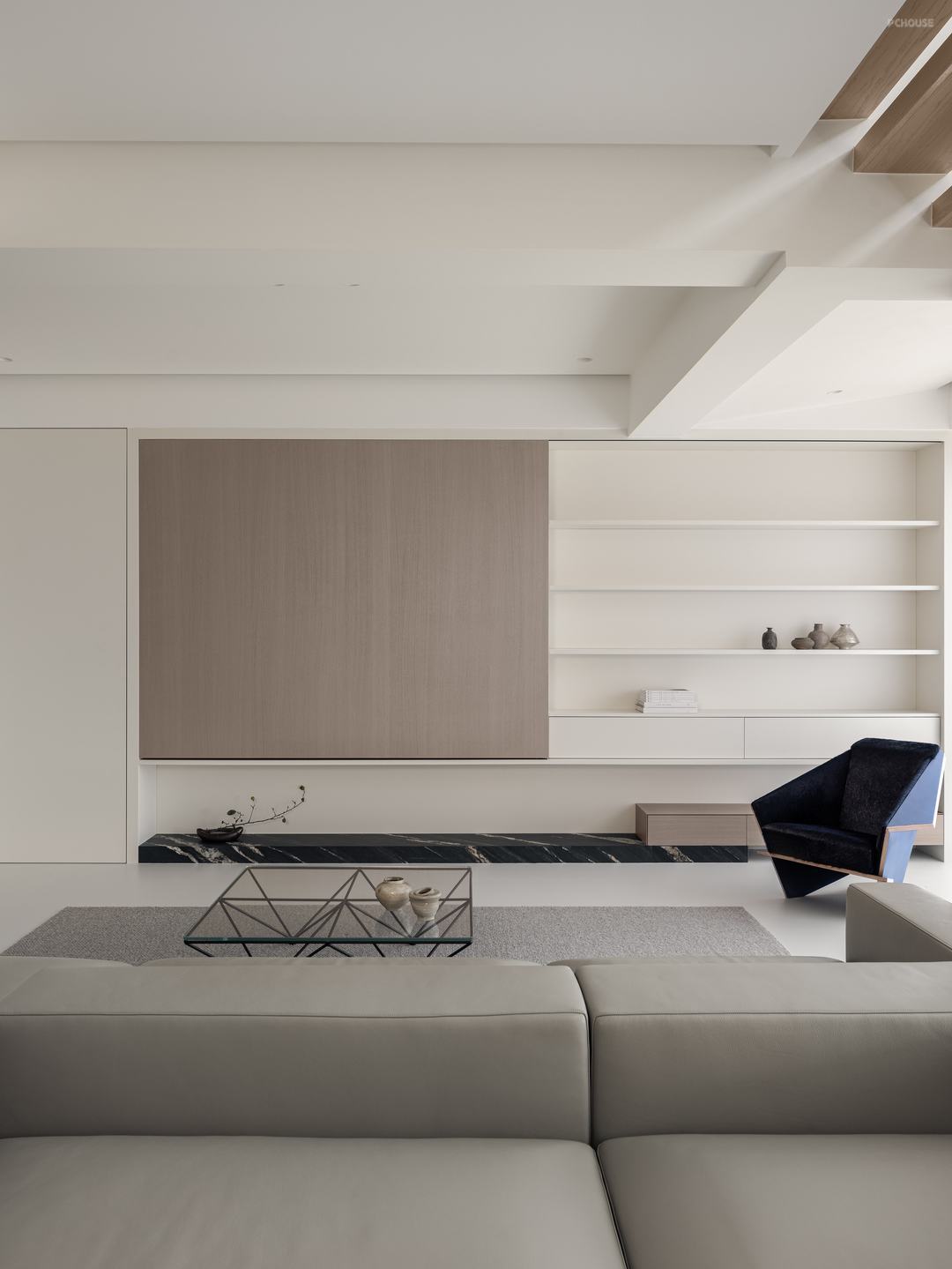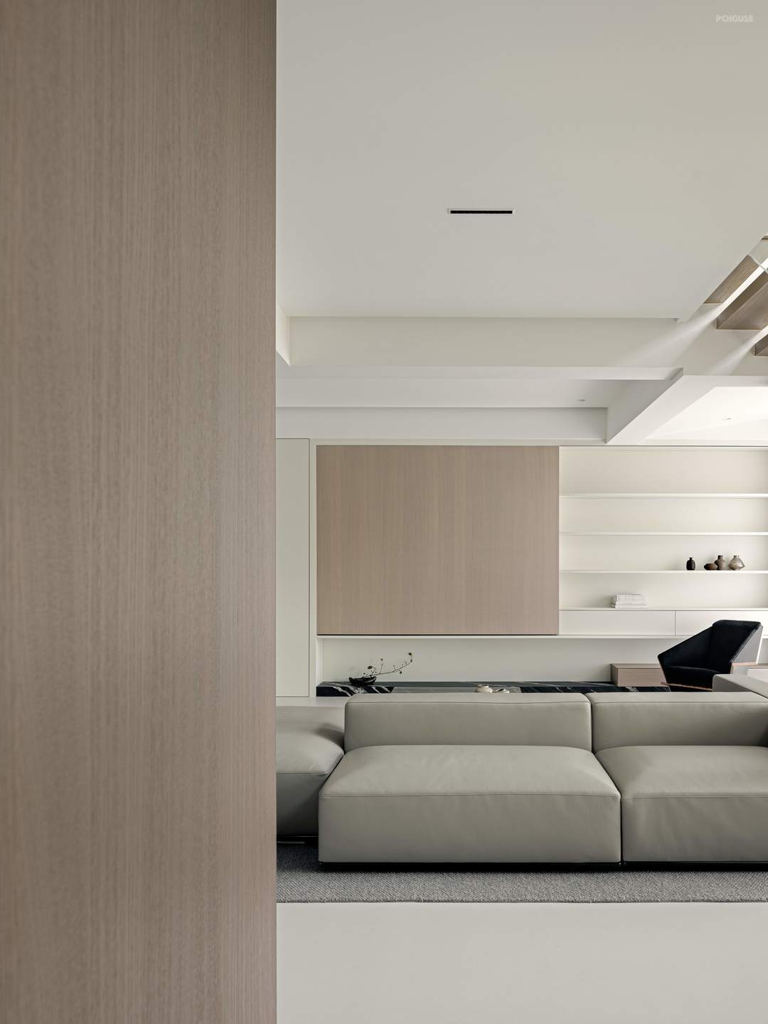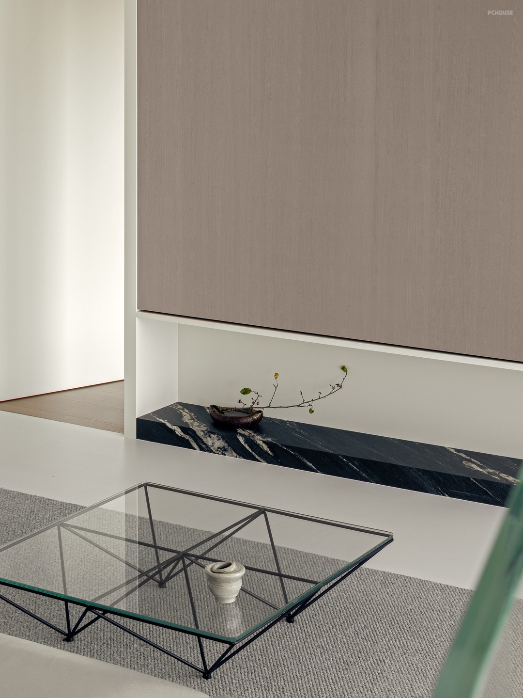 场景刻意空白,搭配橡木作为情感与温度的修饰,在看似平静的表象中,隐藏着律动与层次,容纳更丰富的生活叙事,