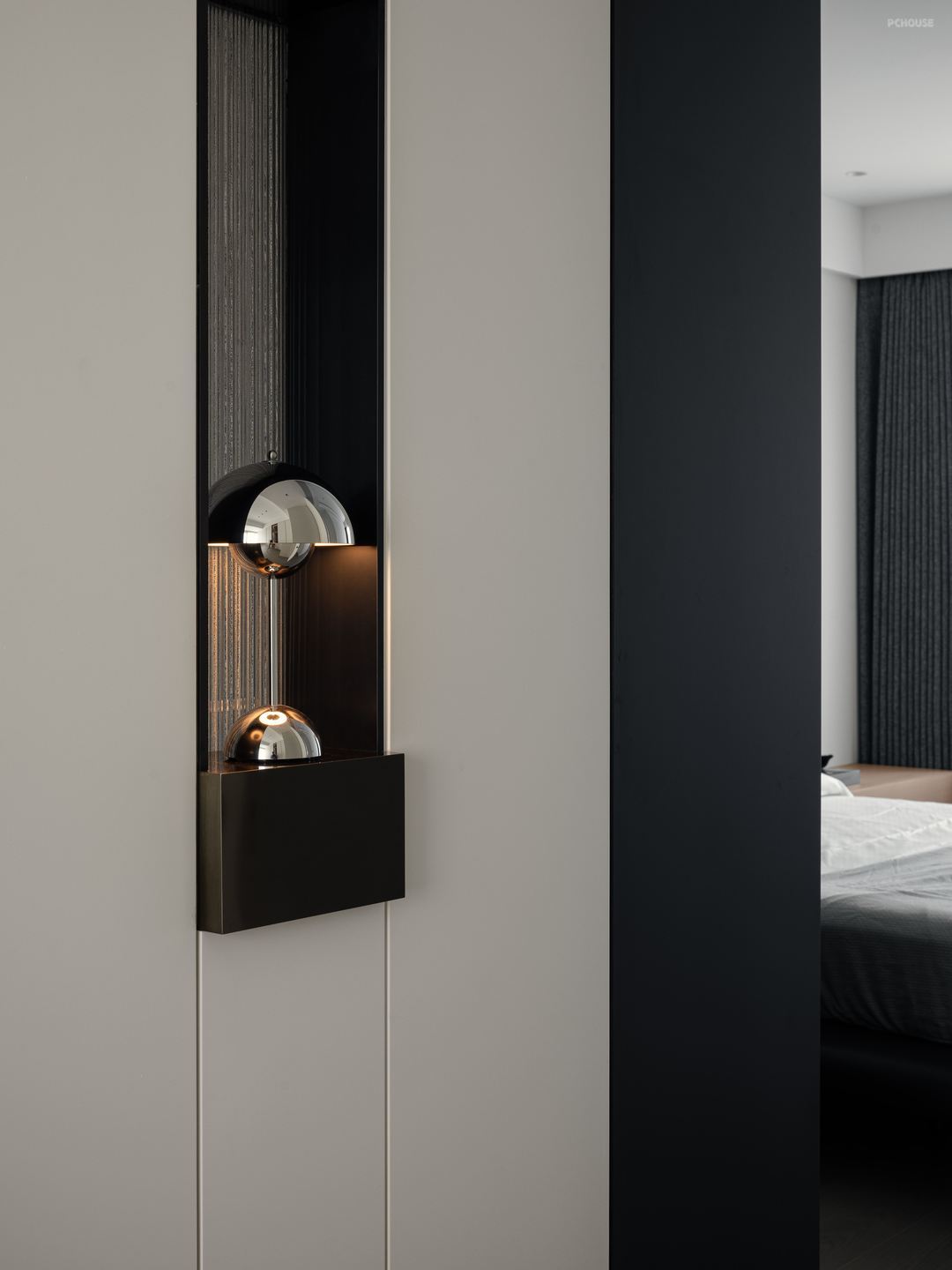 雅黑柜体与润白肌理形成对比,无声传达现代松弛的人生态度,经结构美学微妙叠加,汇入金属感的层次碰撞,为空间赋予无限生动的变量。