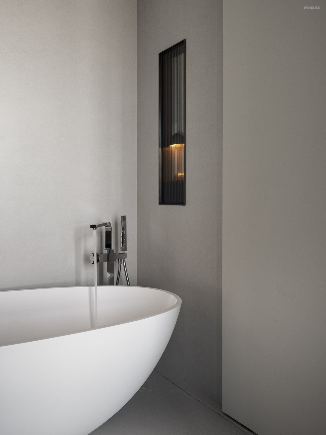 设计持续探究业主的生活习惯与需求,卫浴嵌入双台盆和浴缸,自由掌控舒适的节奏。在理性的空间叙事中,不经意间绽放一抹暖光,直达深层心底,