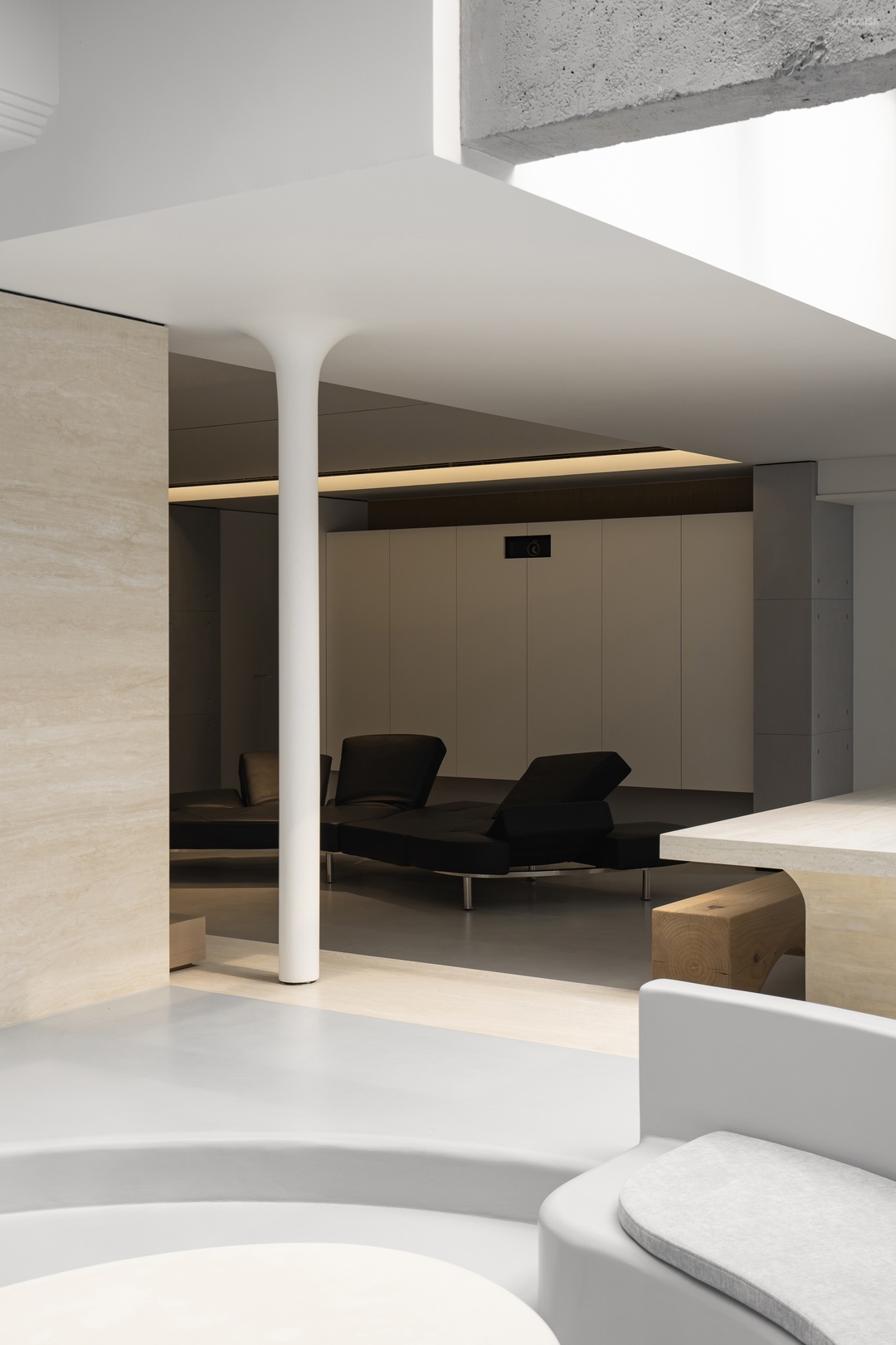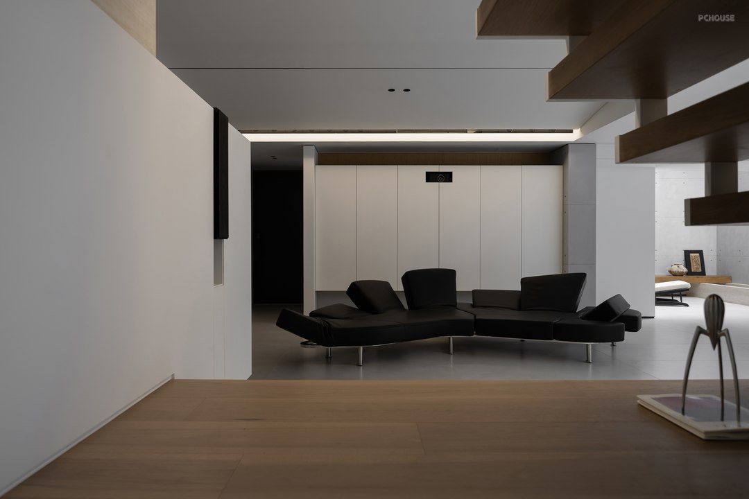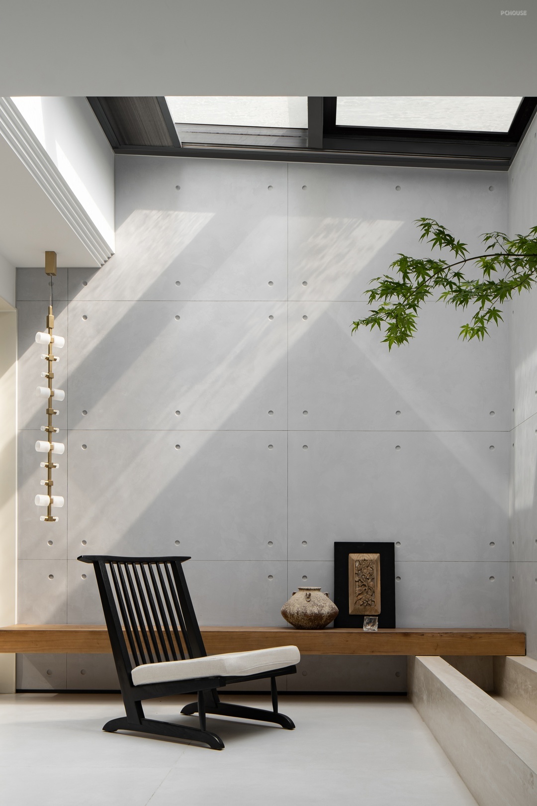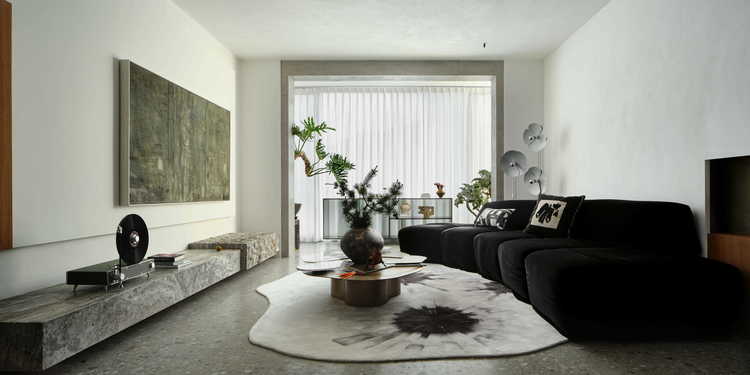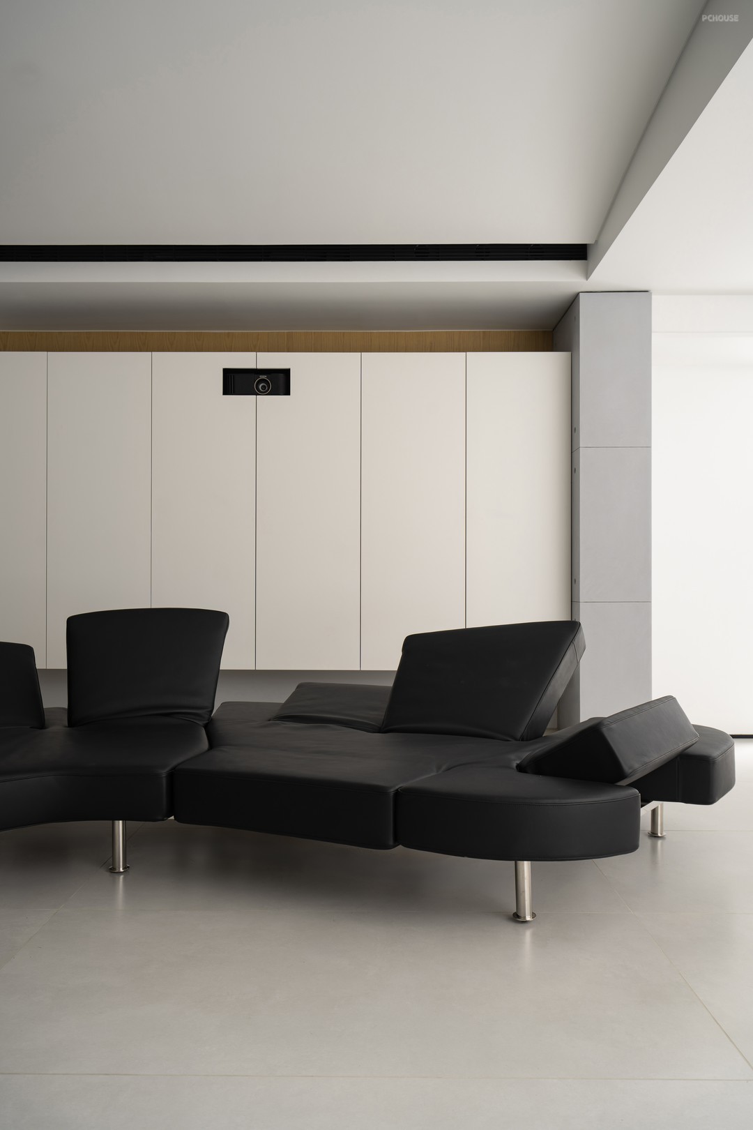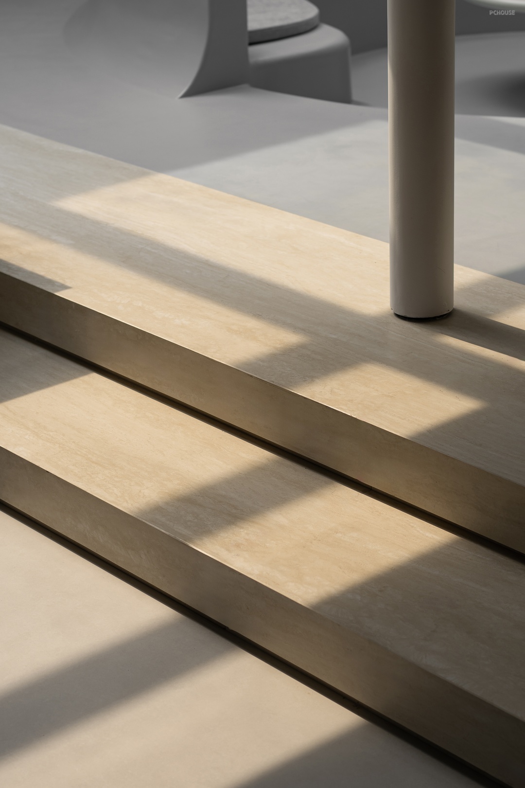 一层空间以女主人偏爱的法式复古为主调,将古典优雅的元素融入现代语境中,呈现出一种不动声色的浪漫与精致。立柱与墙角的转折处以柔和的圆角处理,柔弧的线条蔓延在家具之上,从吊顶到墙体、从沙发到茶几,处处流露着法式的温婉与从容。