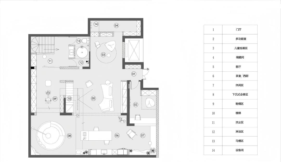 前言: 在这个约280平米的上下跃层空间中,设计师以极具艺术性的笔触勾勒出一处融合法式复古与现代多功能美学的理想居所。一层为日常生活的主场,布局宽敞,流线自然,负一层则以“视线”为线索,打破传统界面的桎梏,使人与空间、人与人之间的关系变得更加灵动与自由。这不仅是一个居住的容器,更像是一场视觉与情感的双重旅程。