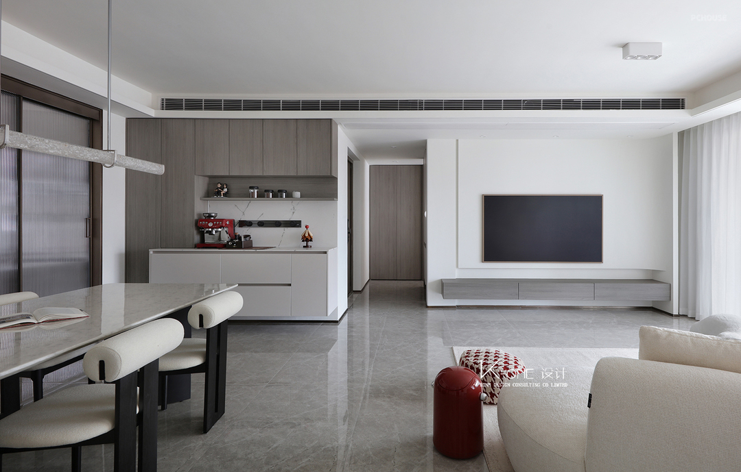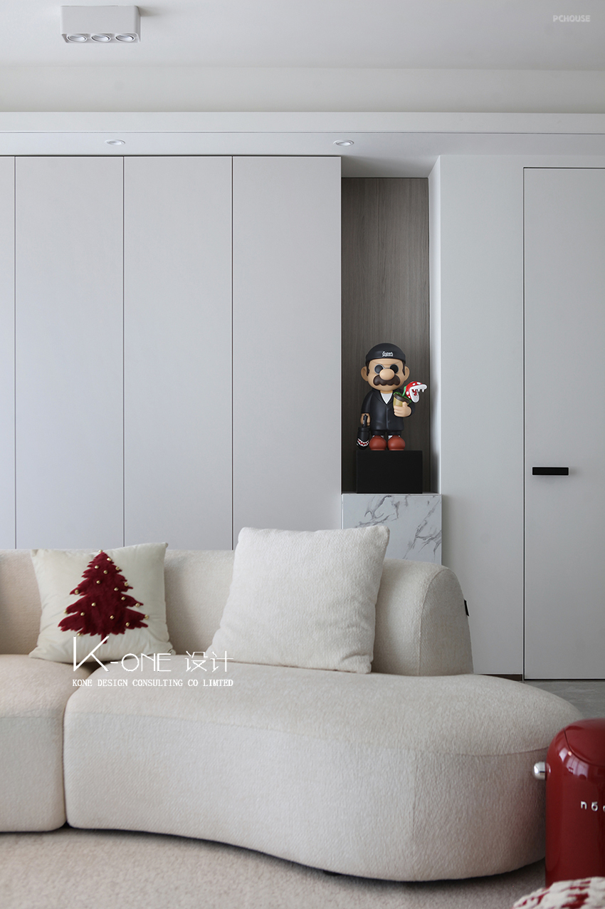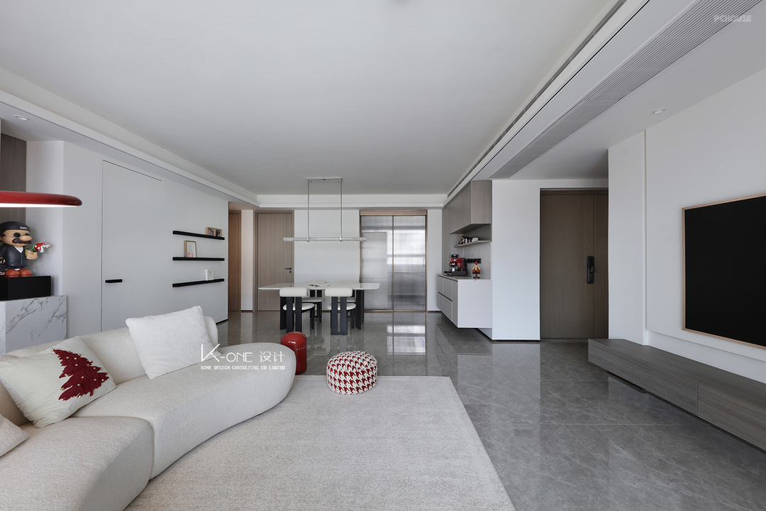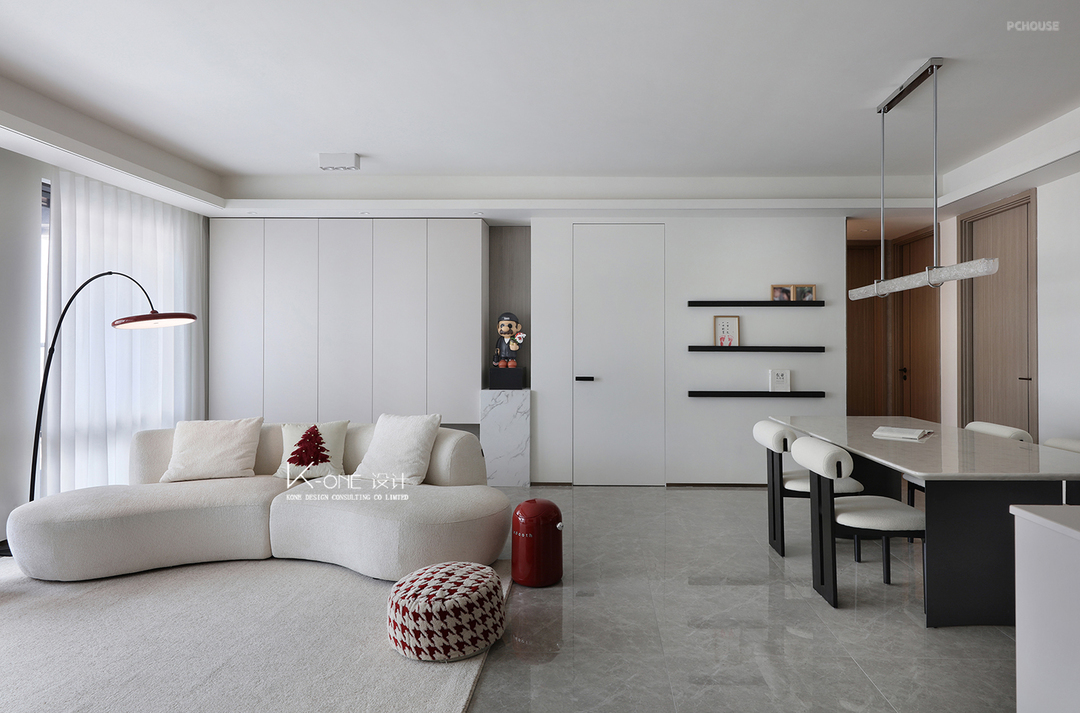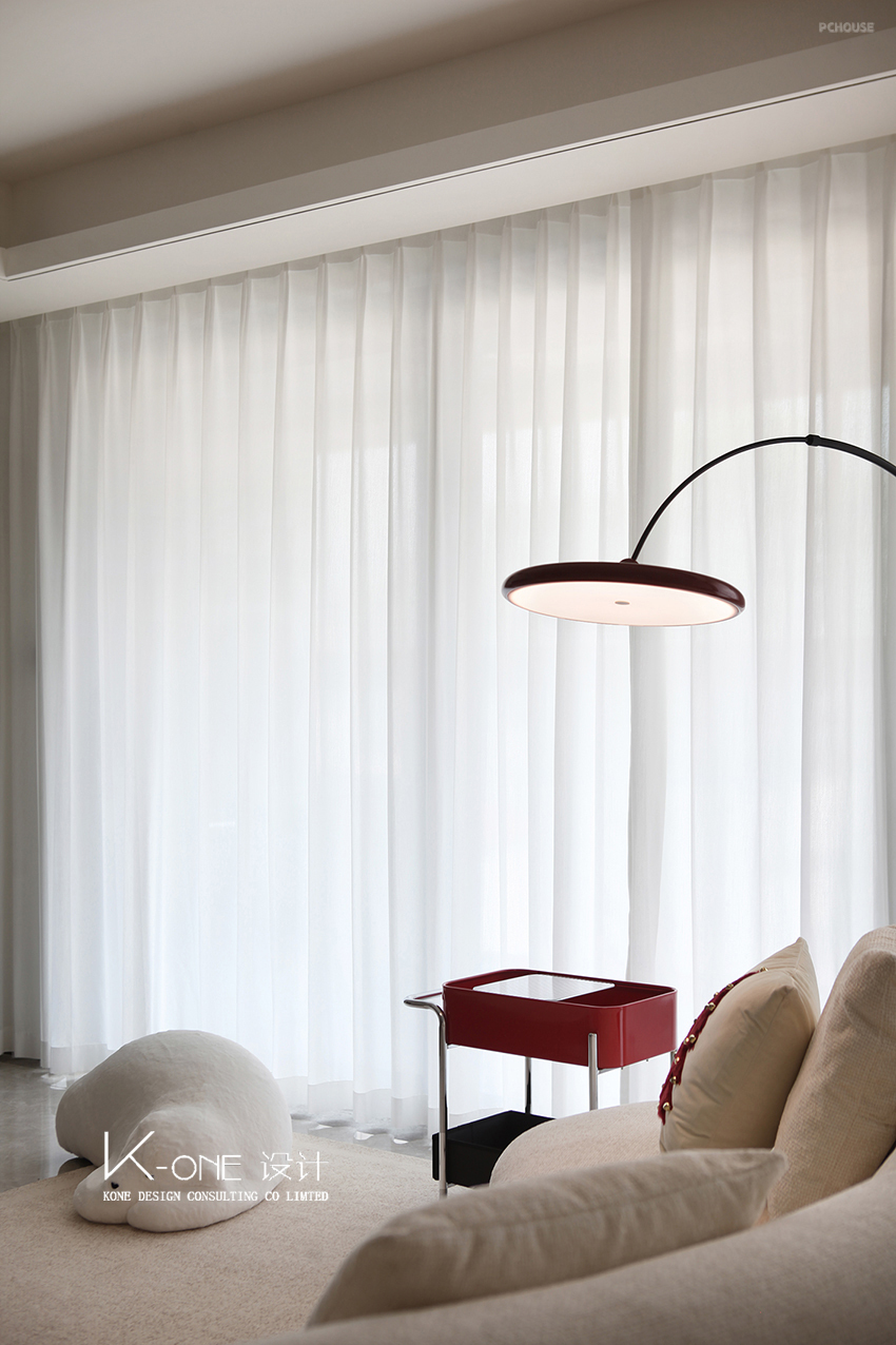 晨光漫过素白窗纱,风掀动书页。空间以简约白为基调,穿插着红色的灵动,将家的温馨融入每一处细节,更添空间的层次感与艺术气息。