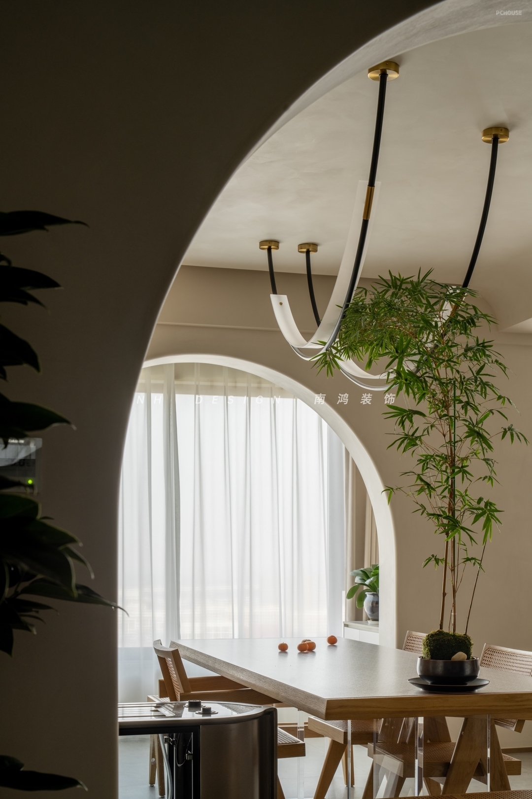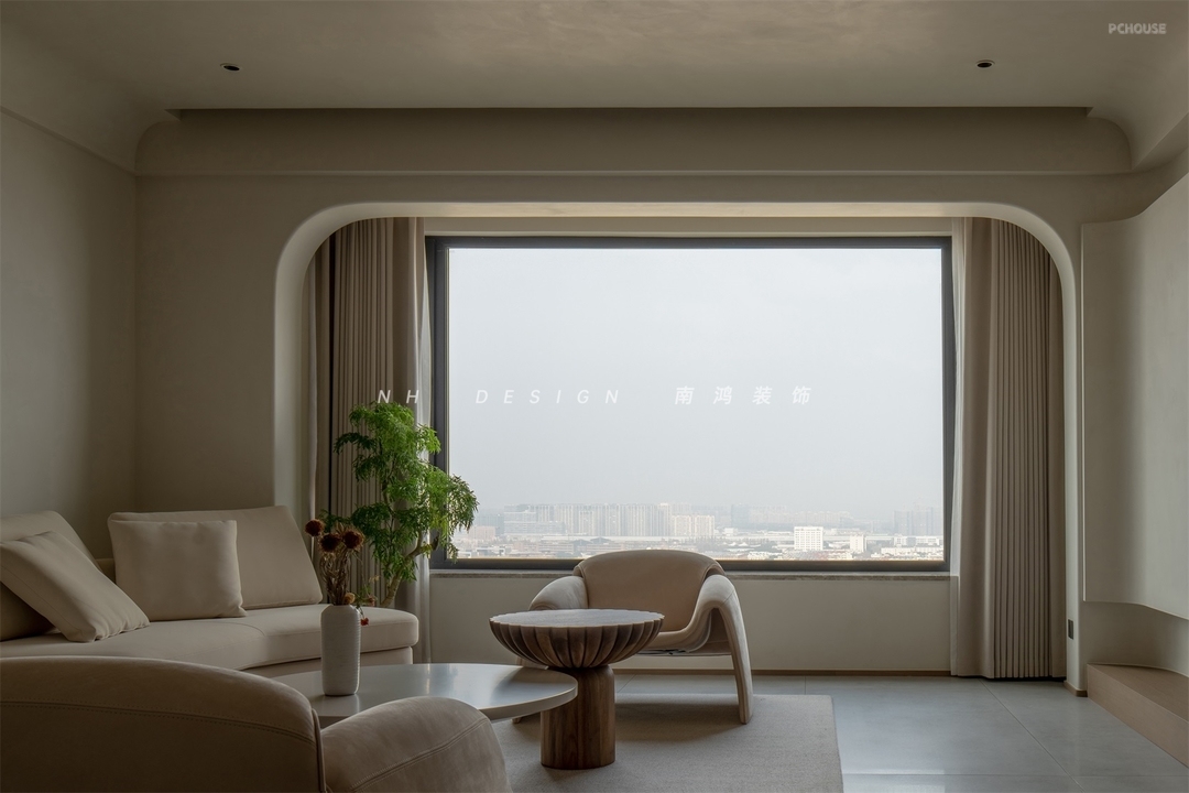 前言: 本案以室外的绝美江景为天然画布,将返璞归真的侘寂哲学演绎得淋漓尽致。室内以艺术漆墙顶面为基底,肌理质感随光线流转而不断变幻,低饱和度米白色搭配温润大地色系,结合原木、藤编等天然材质,营造自然的美韵。空间整体的线条感十分流畅,通过圆弧、留白营造柔和的通透质地,居室在简约中更透着层层随性与优雅。