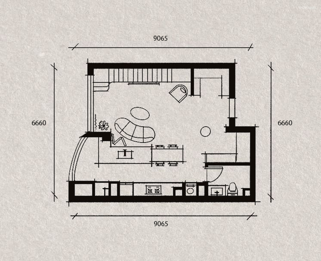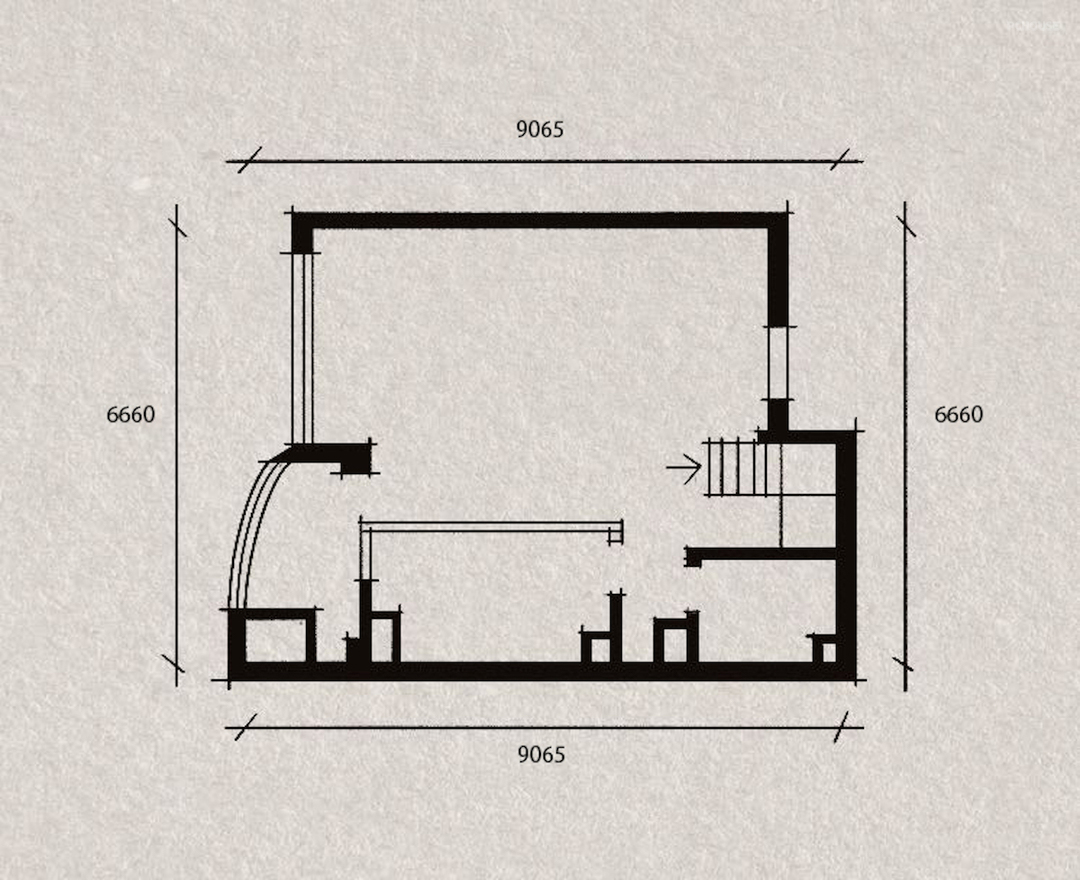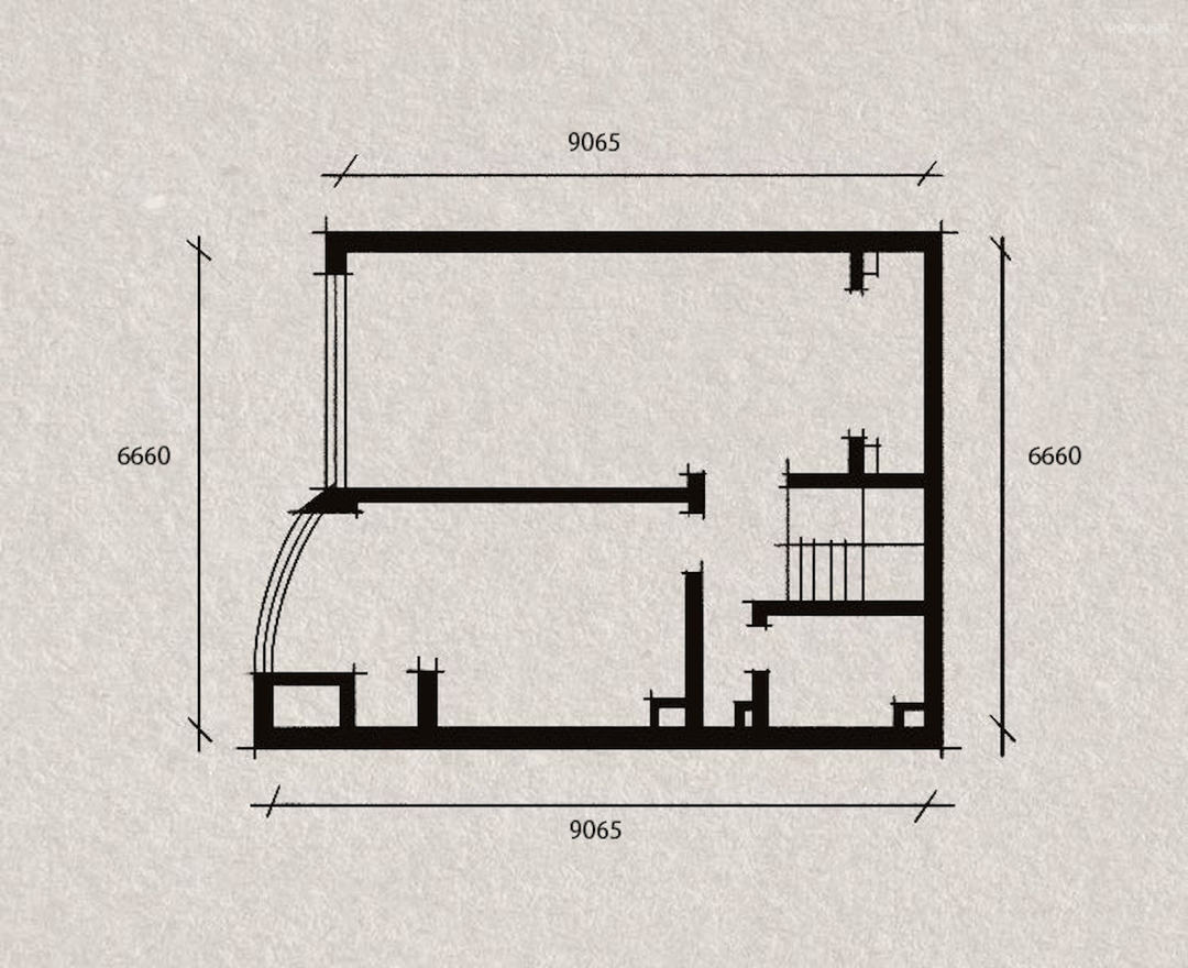 通往二楼的楼梯改为由客厅进入,楼梯外墙与电视机墙合二为一.