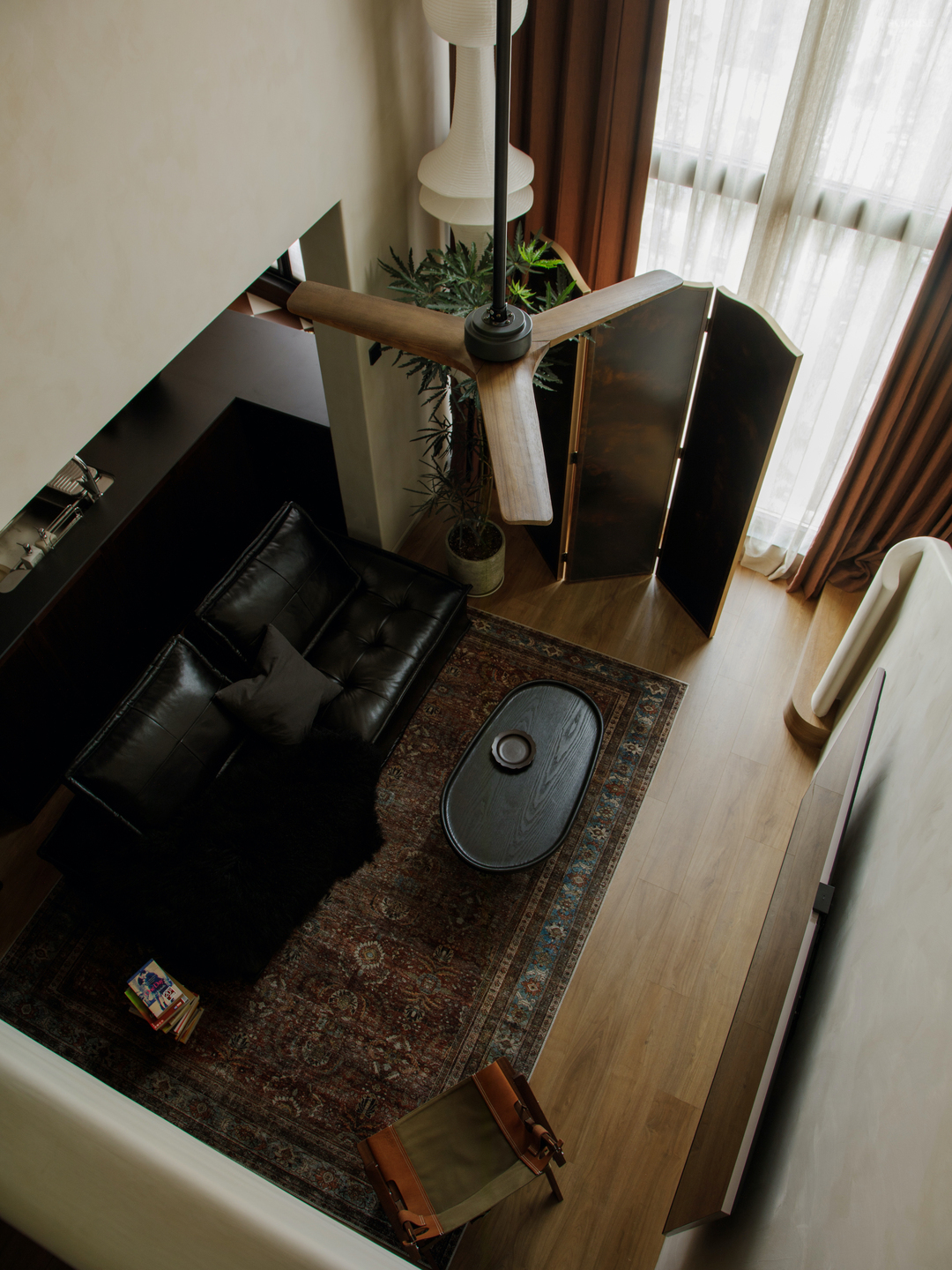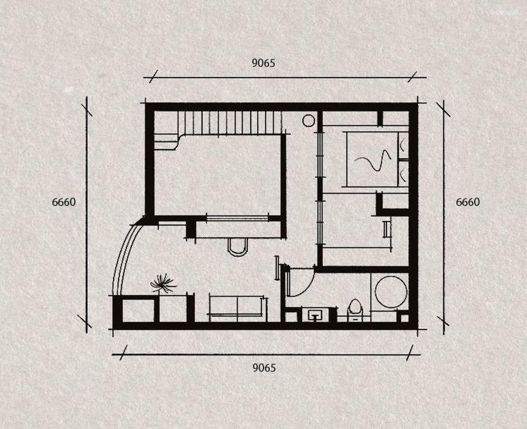 不仅解决了户型单面朝向的通风问题,创造了两人生活更多陪伴的可能,在需要的时候更可以兼顾私密性.