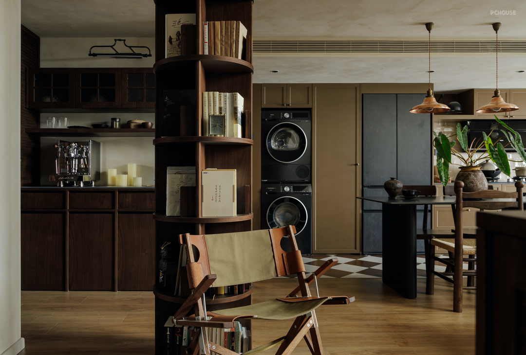 同时这个书架奇妙地将空间分隔成四个部分:水吧,餐厅,客厅和玄关. 在居住感受上,空间反而变得更大,动线更有趣.