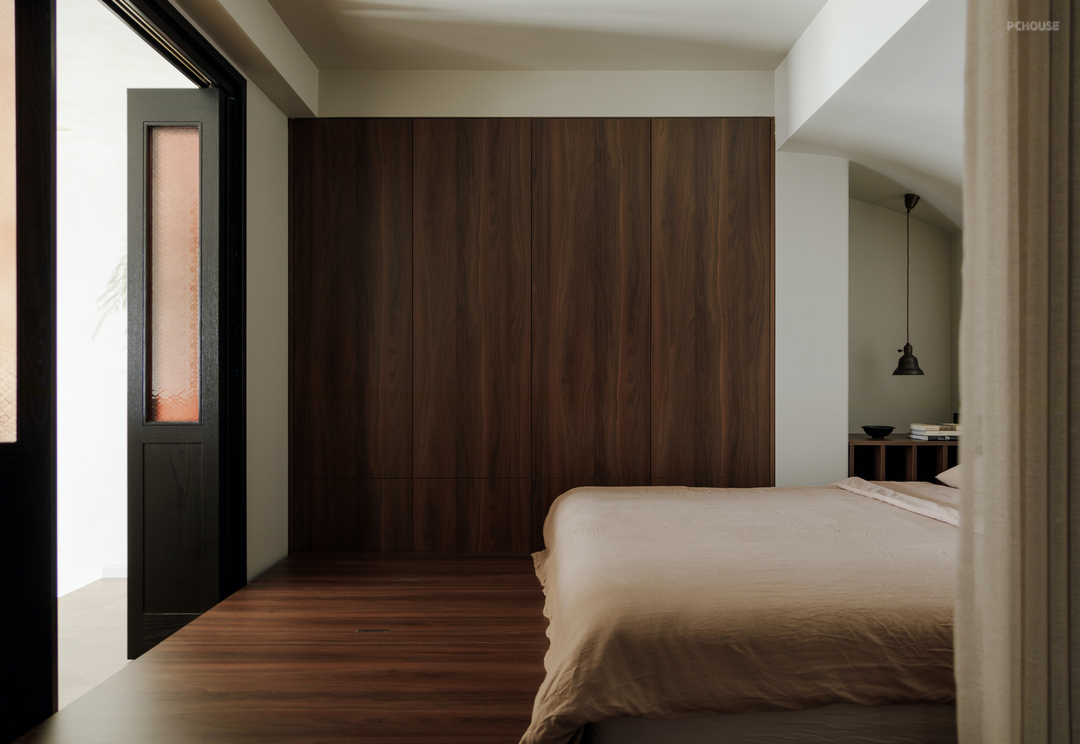 二楼主卧的墙面,为小猫咪亲近主人留出了一扇专属小门.