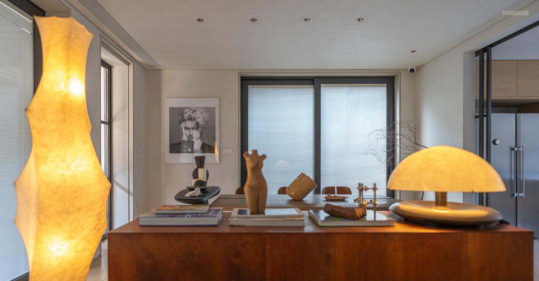 缘起一盏与业主父母家同款的和纸灯,各异造型的纸灯化身家中的独特符号,从公共空间延展到卧室,仿佛家族的温暖情意在空间中流淌。核心的这盏野口勇通顶落地灯,设计师将它安排在负一层的正中央。那些属于东方人的家族情意,因带有情感的设计,因而有了传承之貌。