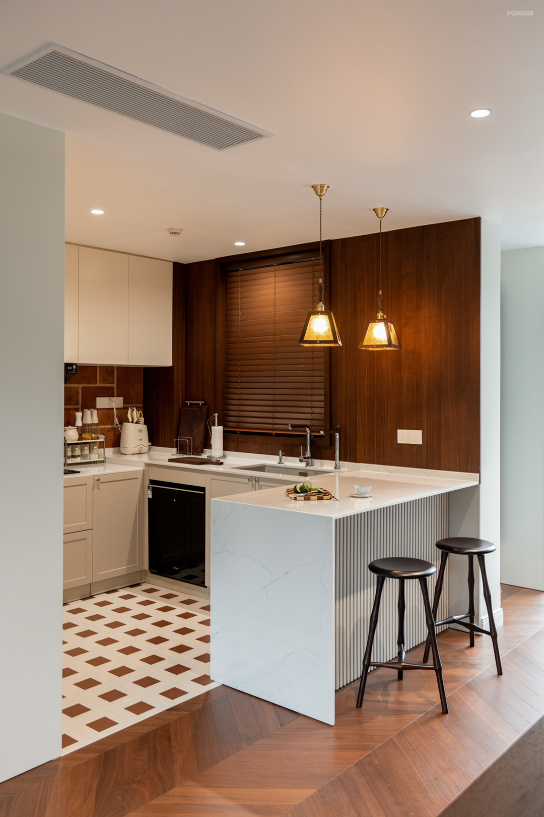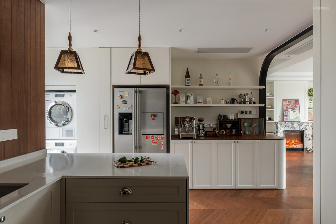 李小姐在咖啡吧冲好每日的续命咖啡,转身在吧台吃个简餐,晚上偶尔和先生煮个夜宵,正好就近享用。