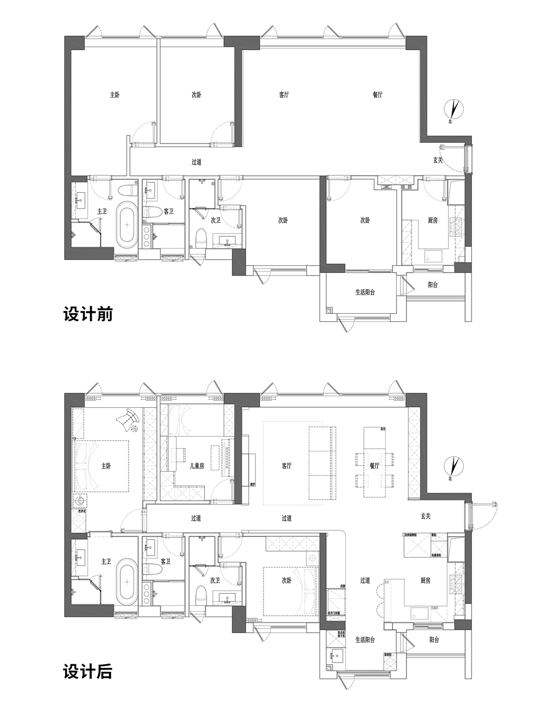 事实上,每个家庭即使能用“三口之家”、“四世同堂”词汇来概括,仍存在千差万别的生活习惯,我们可以套进标准码里,但不一定舒服,格局改造就是一个量体裁衣的过程。