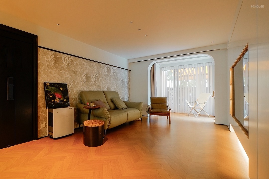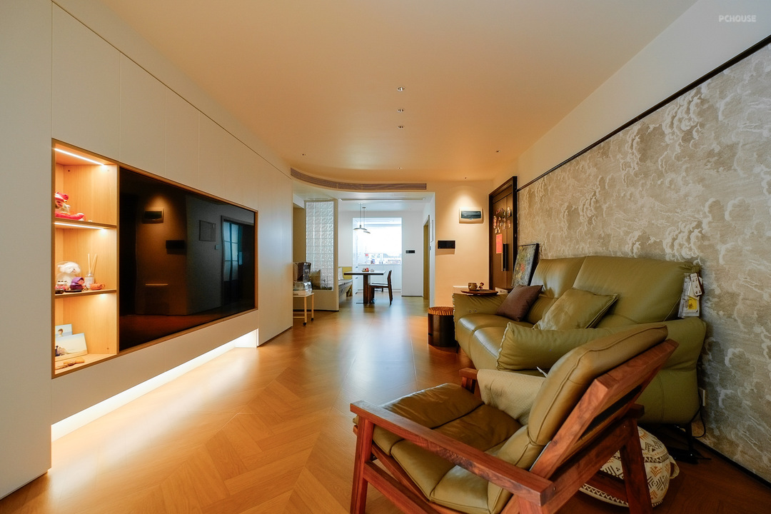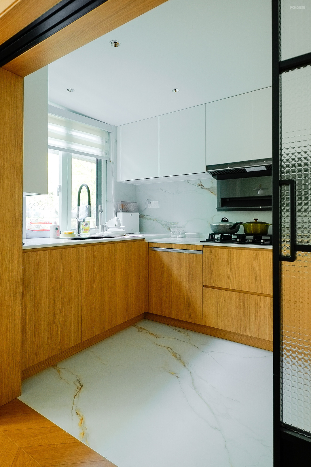 我们选择了浅木色搭配大面积白色的材质颜色组合,让房主原有的深色家具可以继续使用,但又不会让空间看起来过于暗沉压抑。