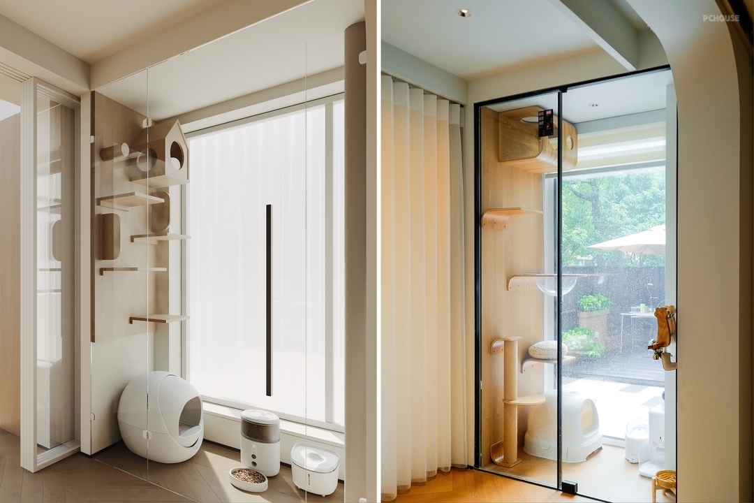 阳台靠窗另外一侧,被设计成了猫房,这里阳光充足,有窗户能够通风,一定是毛孩子未来最喜欢的地方。