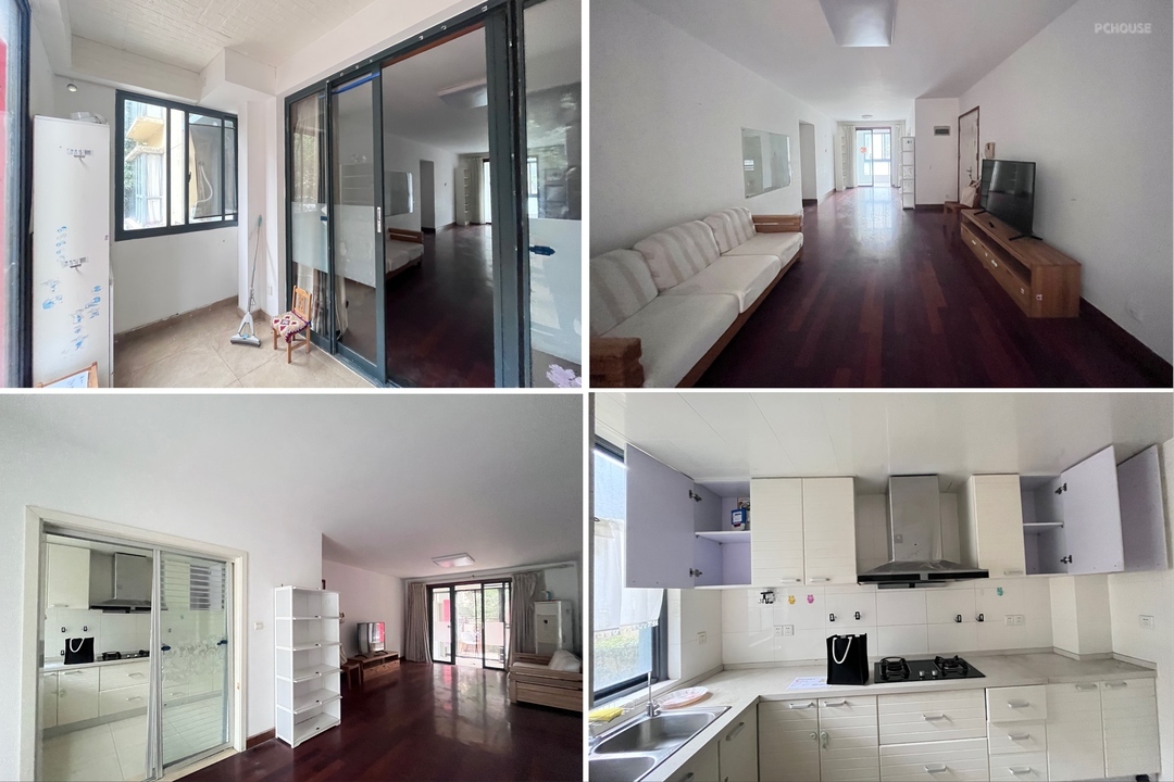 一楼的位置让房子的采光显得比较弱,加上原有的地板颜色较深,阳台又有移门阻隔,这些不利因素都让这个房子看起来暗沉闭塞。