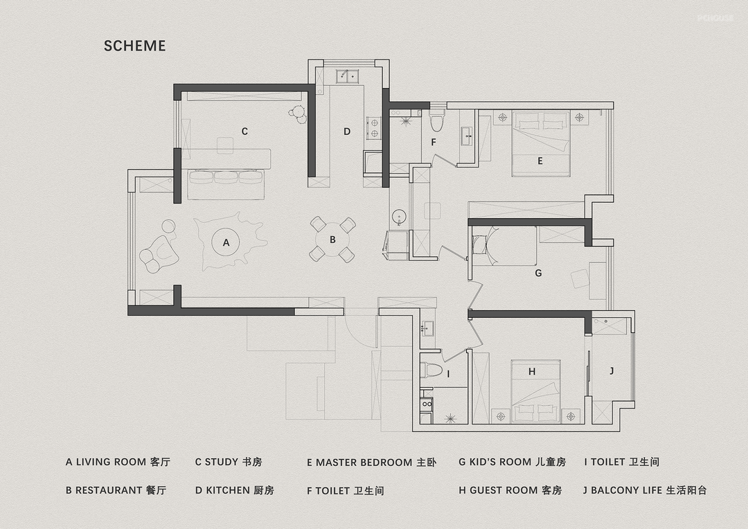 屋主们的向往,并非简单的风格模仿,高级感只是一个标签,酒店空间往往藏着对疲惫身体最直接的安抚—— 灯光恰当地散落在需要的位置;伸手可得的收纳一点点吃掉储物量;运用的材质都经得起频繁使用的考验;而开阔的流动感,才让人们真正放松下来——这些恰恰是家庭生活空间所渴望的。