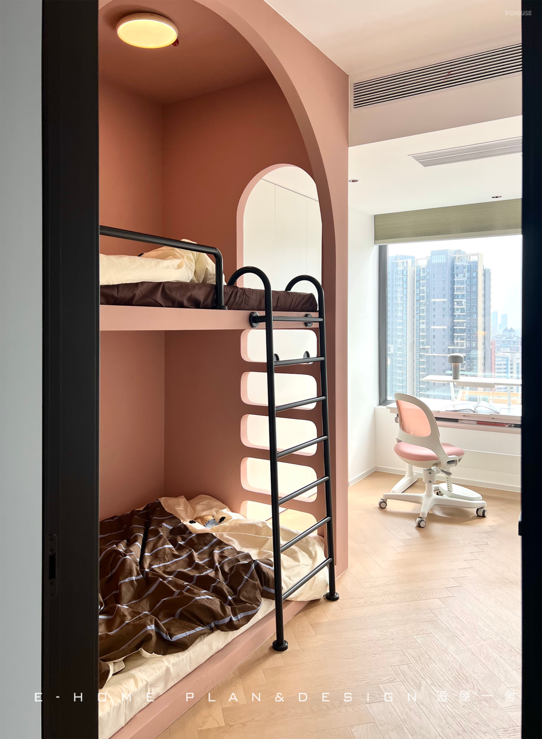 “这个房子是为四口之家的生活而规划的,木纹质感铺满墙面,或者用来压低床背营造舒适感,无主灯光源散布,只在需要的时候出现,这些在酒店设计中的经典的手法一旦用于家居中,就会衍生出令人舒坦的秩序感。”