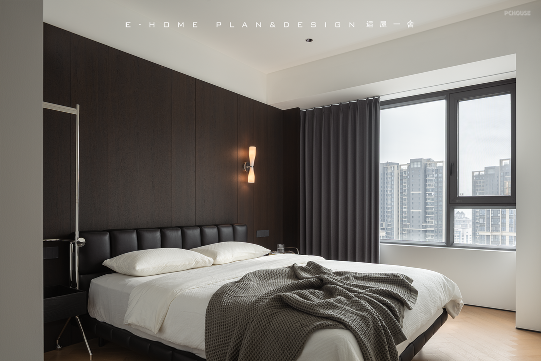 主卧和次卧这两个房间相互呼应,木纹质感铺满墙面,或者用来压低床背营造舒适感,无主灯光源散布,只在需要的时候出现,这些在酒店设计中的经典的手法一旦用于家居中,就会衍生出令人舒坦的秩序感。