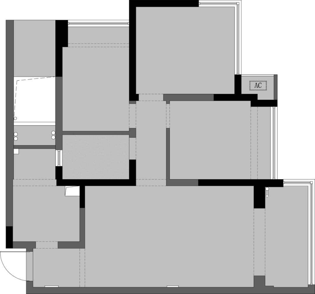 原户型是一个比较方正且也是比较常见的三室一厅,但问题同样也是比较明显的,比如规划的厨房区域过于逼仄、一个卫生间的设置对于这个家庭来说也有些紧张等等……都是需要我们着重设计的点。
