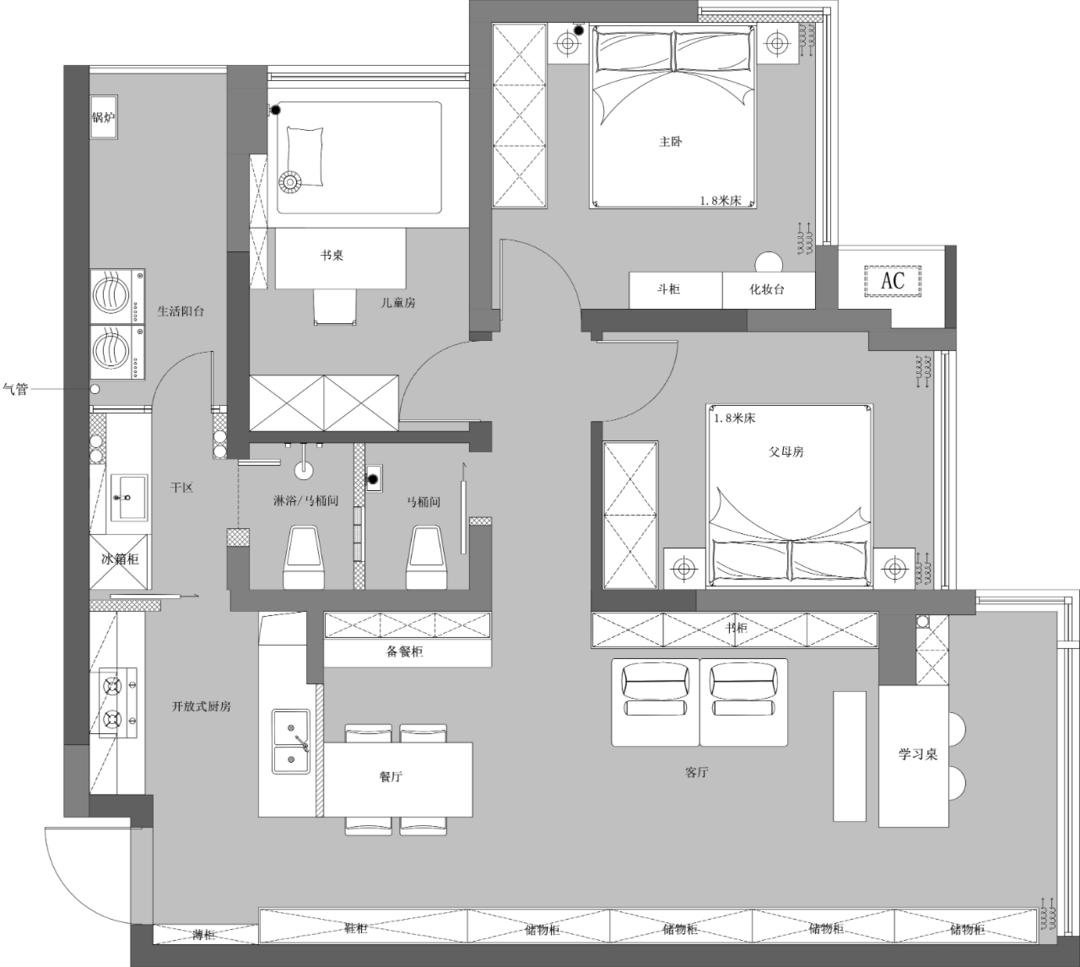 卧室都比较小,所以就以满足基本的休息及储物为主要目标。