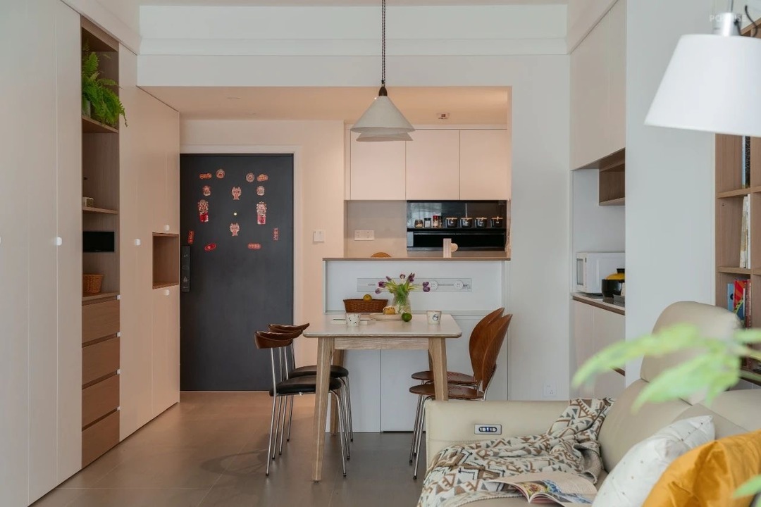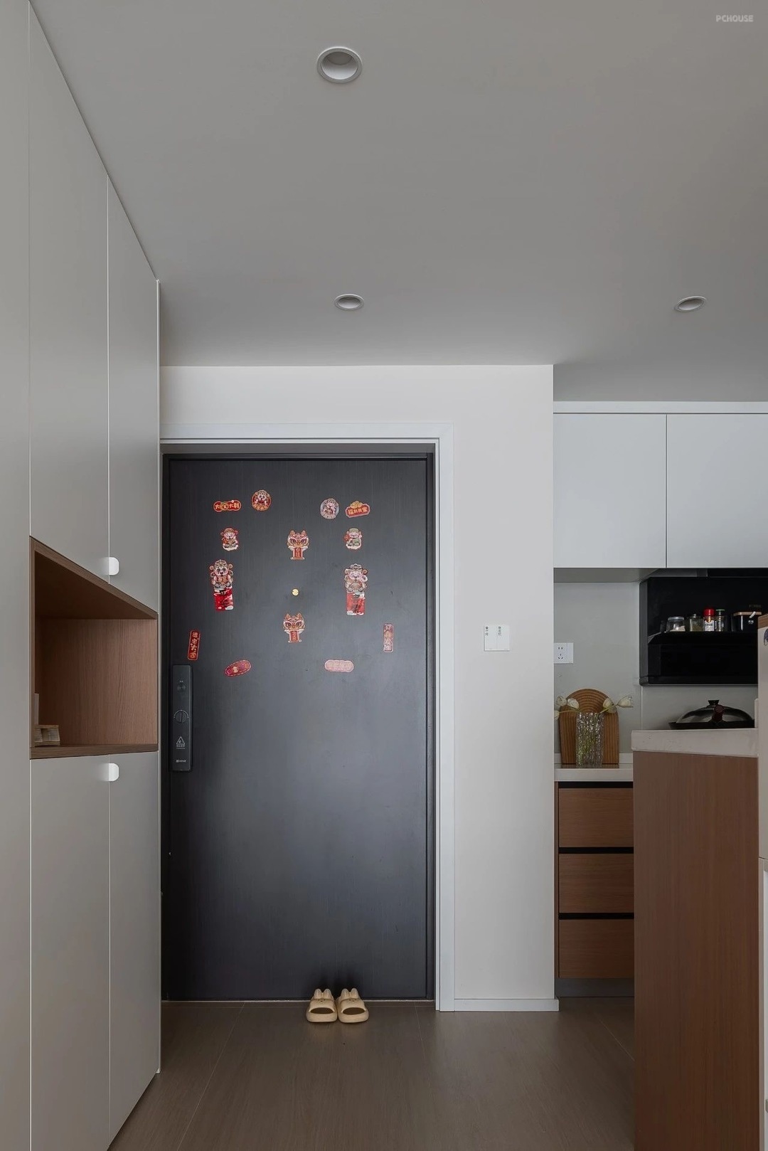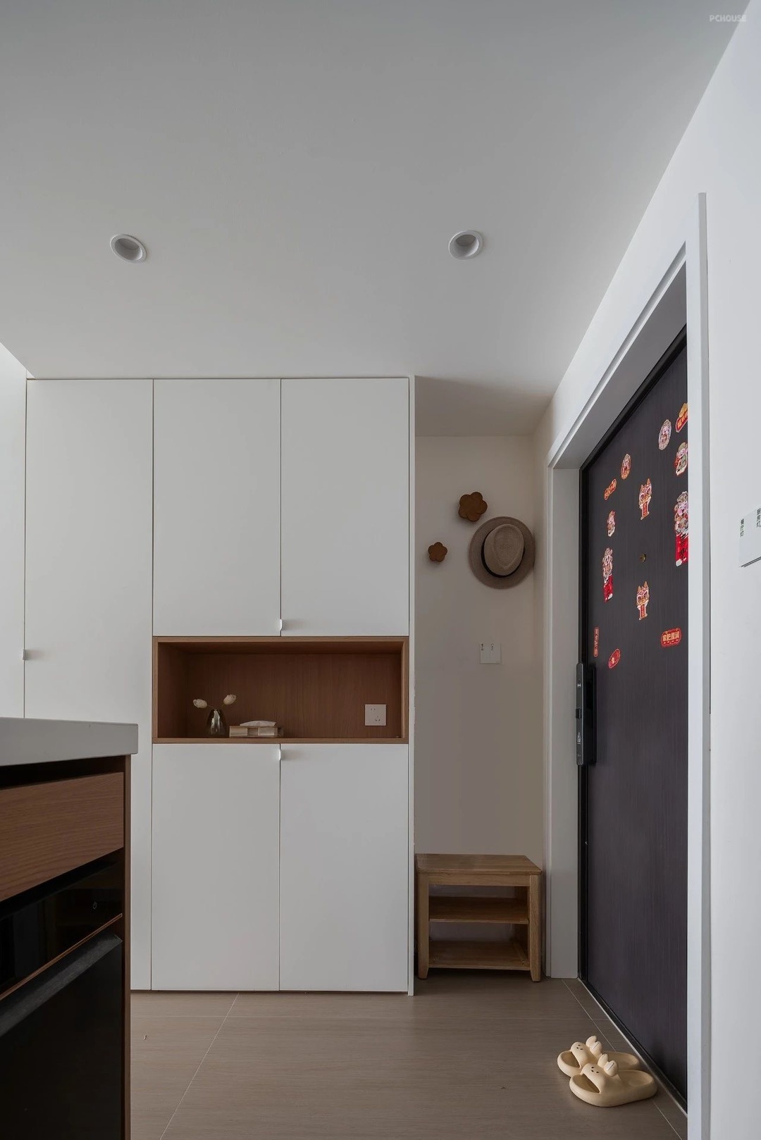 入户一个小小的玄关,拆掉原本厨房的墙体之后,进门的空间稍稍宽敞了一点。