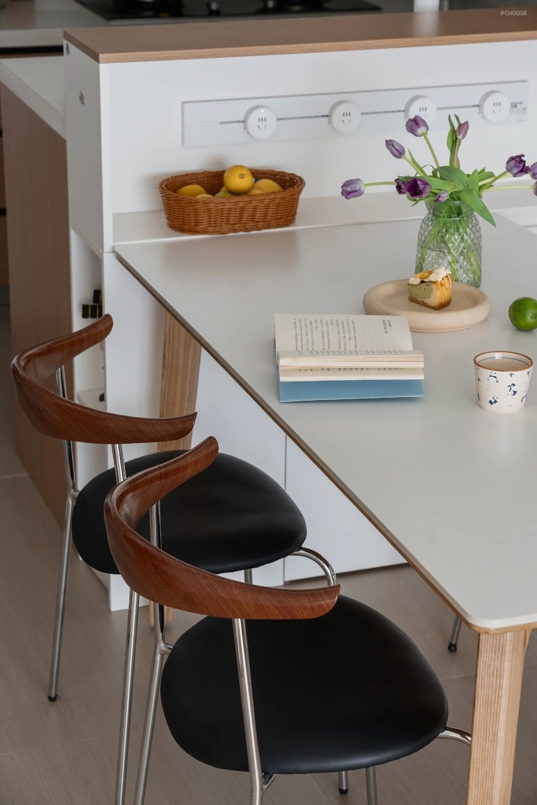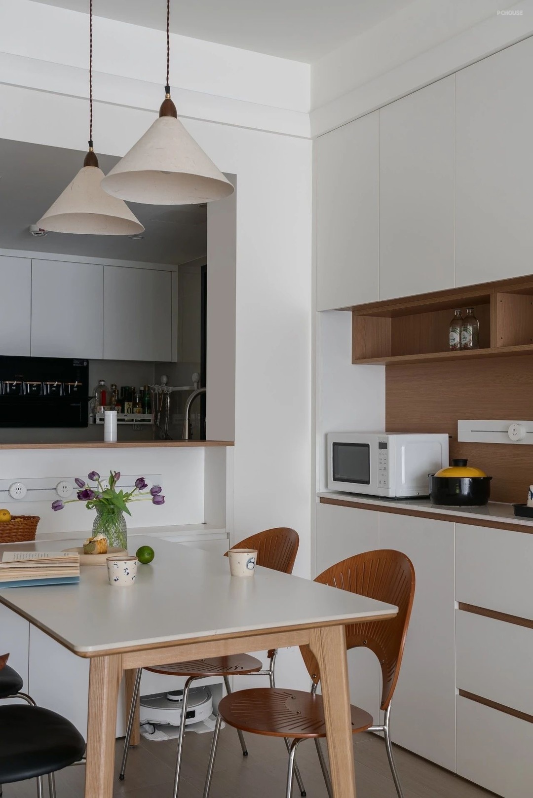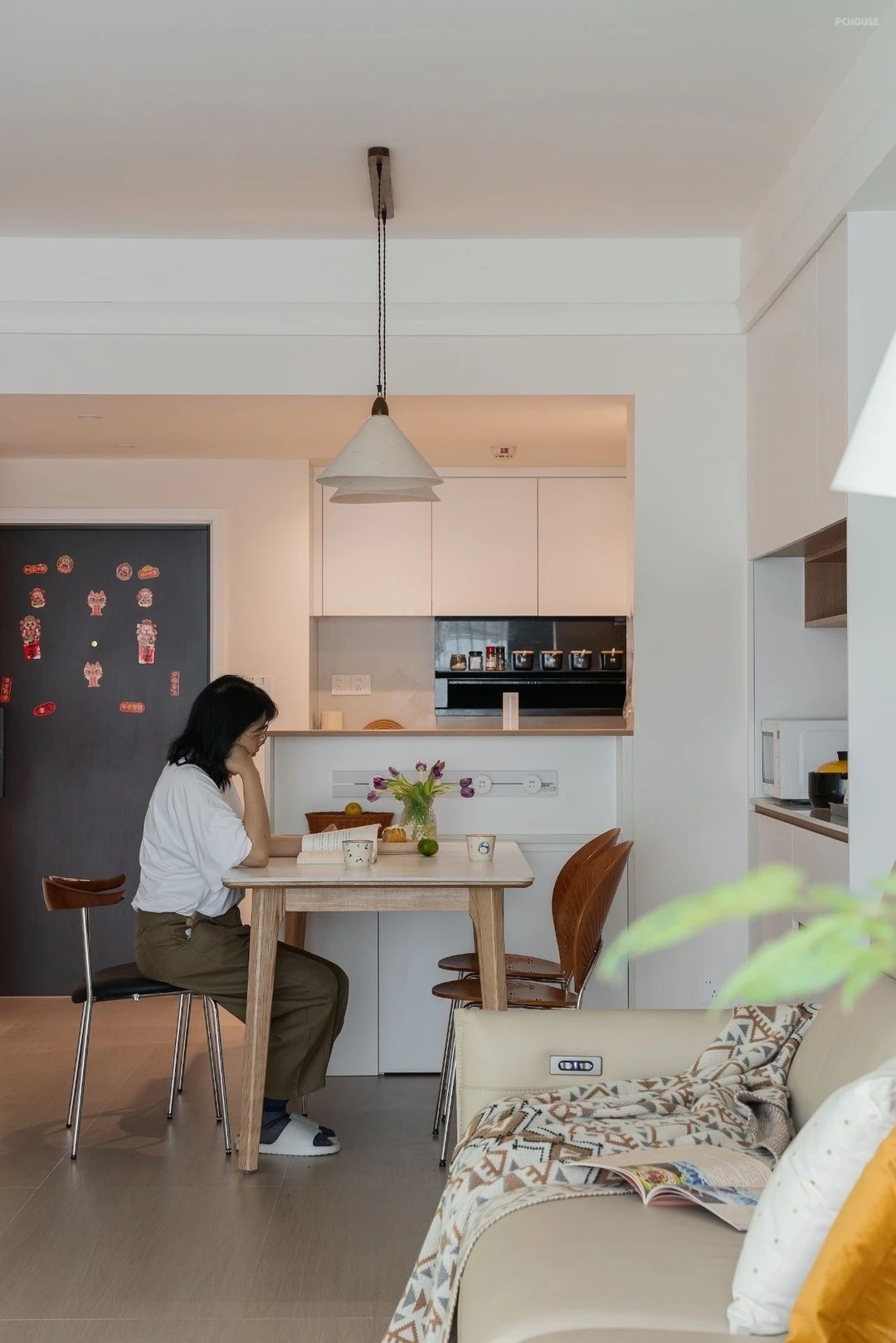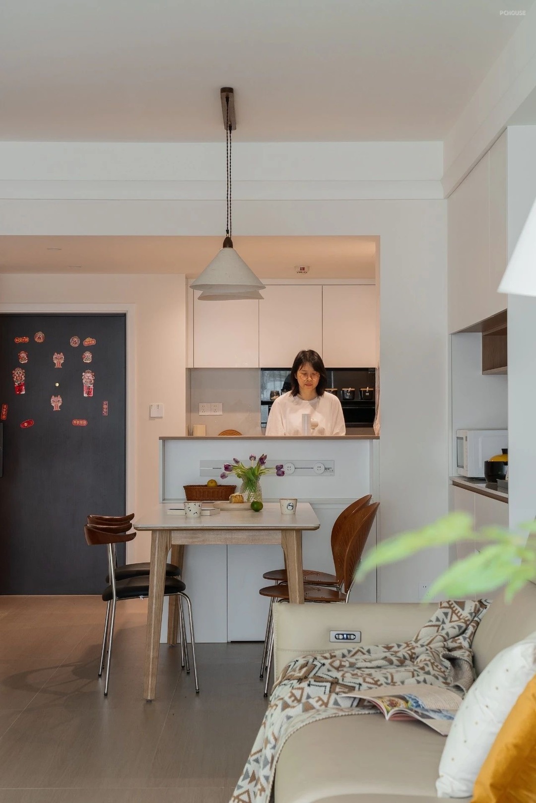 从客厅看向餐厨区,视线不受遮挡,家人也可以随心互动~