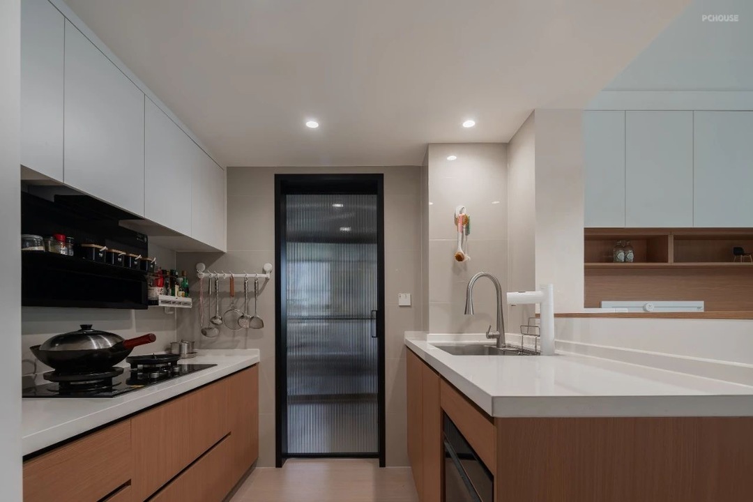 餐厨区大场景来一张。两侧都是到顶的储物柜,满满的安全感~
