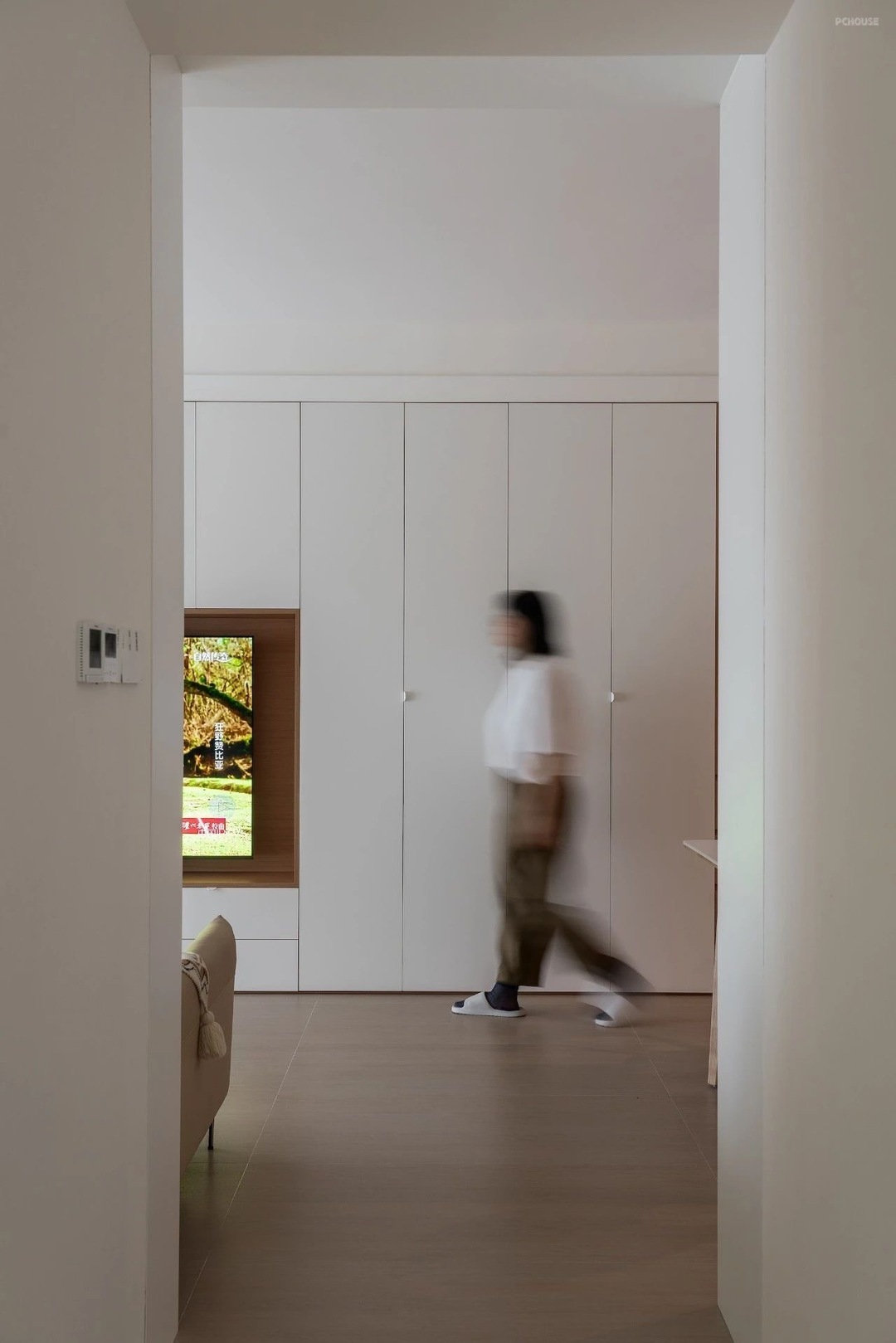 3️⃣ 由于要实现长期居住的目标,家中储物空间是一定要留够的。所以我们在能安放柜子的地方都安排了到顶的储物柜,方便胡女士一家日后存放各种生活用品;